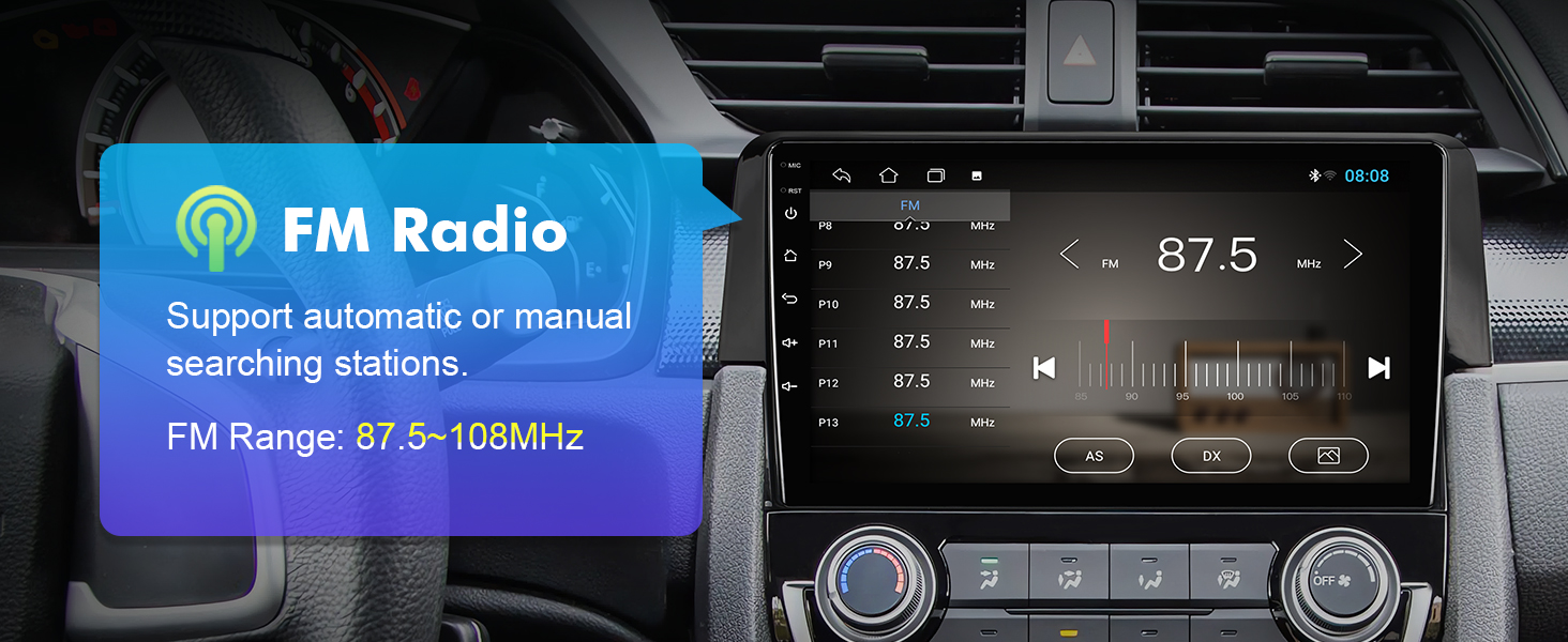 【ملاحظة】: يعمل ستيريو السيارة بشاشة اللمس الخاصة بنا فقط مع موديلات 2016 و2017 و2018 و2019 و2020 Honda Civic، يرجى الرجوع إلى الطرز المتوافقة في الصورة التفصيلية. إذا لم تكن متأكدًا مما إذا كان متوافقًا مع سيارتك، فيرجى الاتصال بنا.