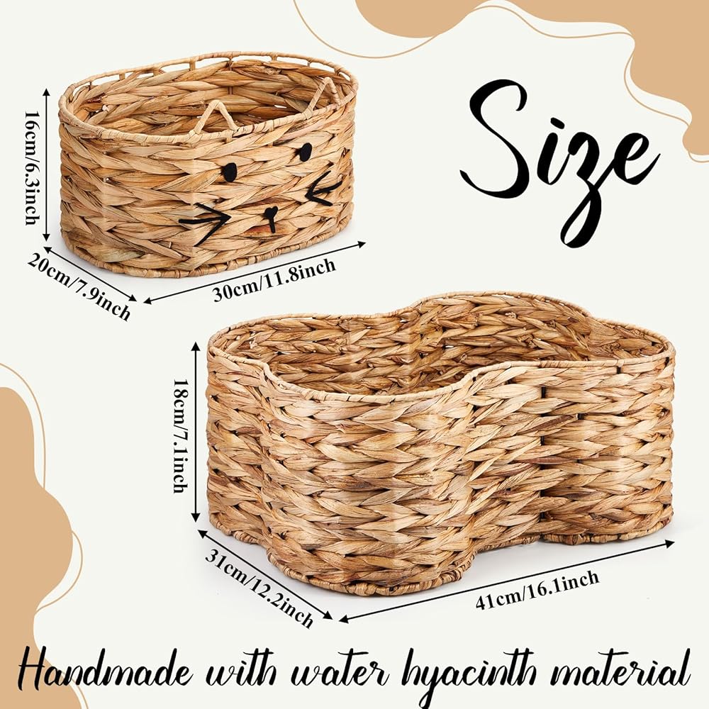 Thoughtful Gift for PET Lovers: an ideal blend of aesthetics and functionality, our toy wicker basket is the ideal gift for pet lovers, friends, and family; These stylish baskets not only serve as beautiful home decorations but also as practical storage accessories; The unique cat and bone shaped designs are sure to put a smile on their faces