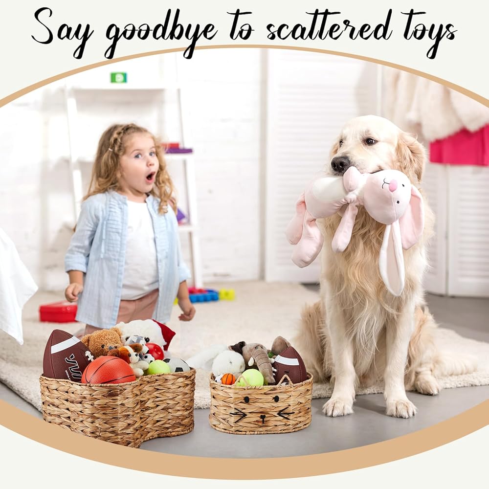 Adorable and Unique Dog Toy Baskets: this is not just another dog toy basket, our basket features the charming bone shape and the cute cat shape designs, which will add a fun and fashionable touch to your home decorations; Designed to blend effortlessly with any decoration style, our dog toy basket will give your pet's corner a sweet and stylish touch; It is all about integrating your pet's needs into your stylish home