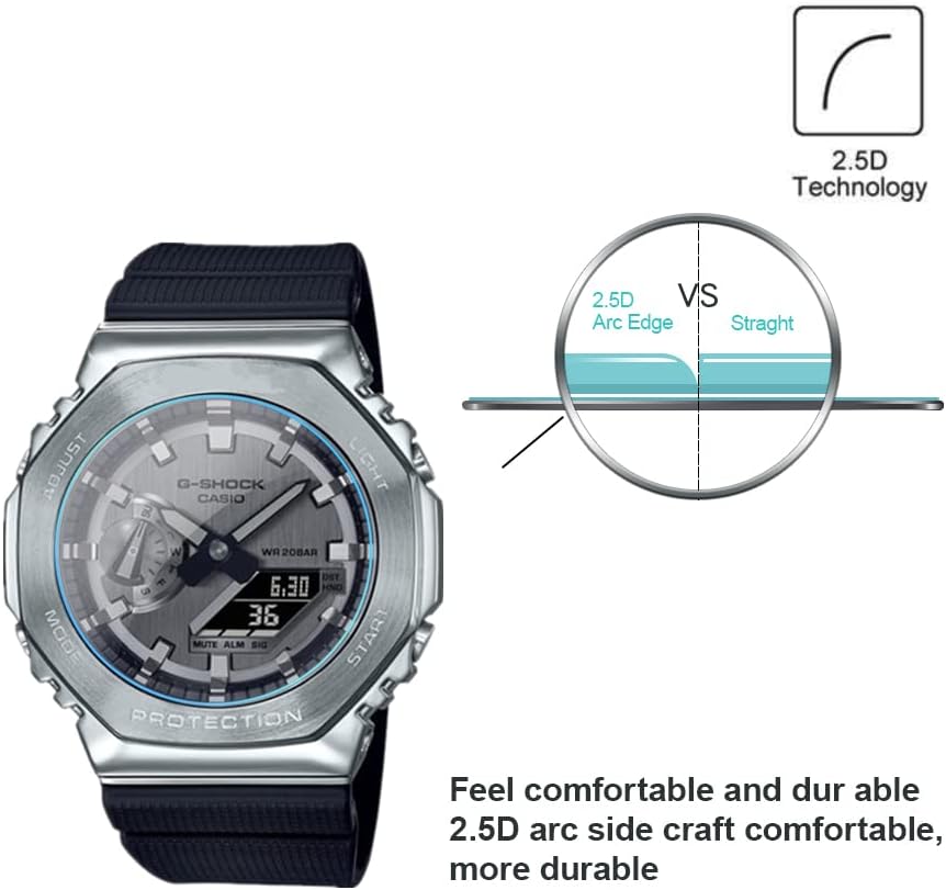 About our product: 1. We pursue the perfect fit, our screen protector is opening mould by real machine. If you have any problems, please contact us for the first time by message ; 2. Suitable for : Screen protector Compatible with Casio G-Shock GM-2100 Smartwatch Tempered glass explosion proof film guard shield ; 3. Material : High quality transparent clear screen protector ,Toughened glass original Japanese imported asahi glass ; 4.Slim chemical treatment prosessed tempered glass,100% real picture, 2.5D edge full coverage Screen Protector; 5. It has excellent window display, high sensitivity and comfortable touch feeling.
