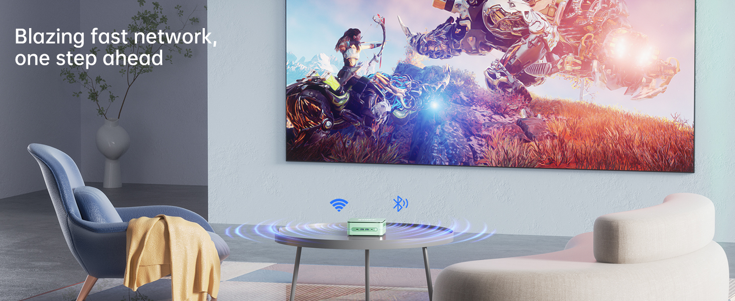 【واي فاي 6 عالي السرعة + BT5.2 】كمبيوتر مكتبي صغير مزود بشبكة LAN بسرعة 2.5 جيجابت في الثانية وWi-Fi 6 وبلوتوث 5.2. تمكين اتصالات أسرع لمجموعة متنوعة من الأجهزة اللاسلكية مثل سماعات الرأس والماوس ولوحة المفاتيح والمزيد. استمتع بسرعات أعلى واتصالات موثوقة وأداء محسّن.