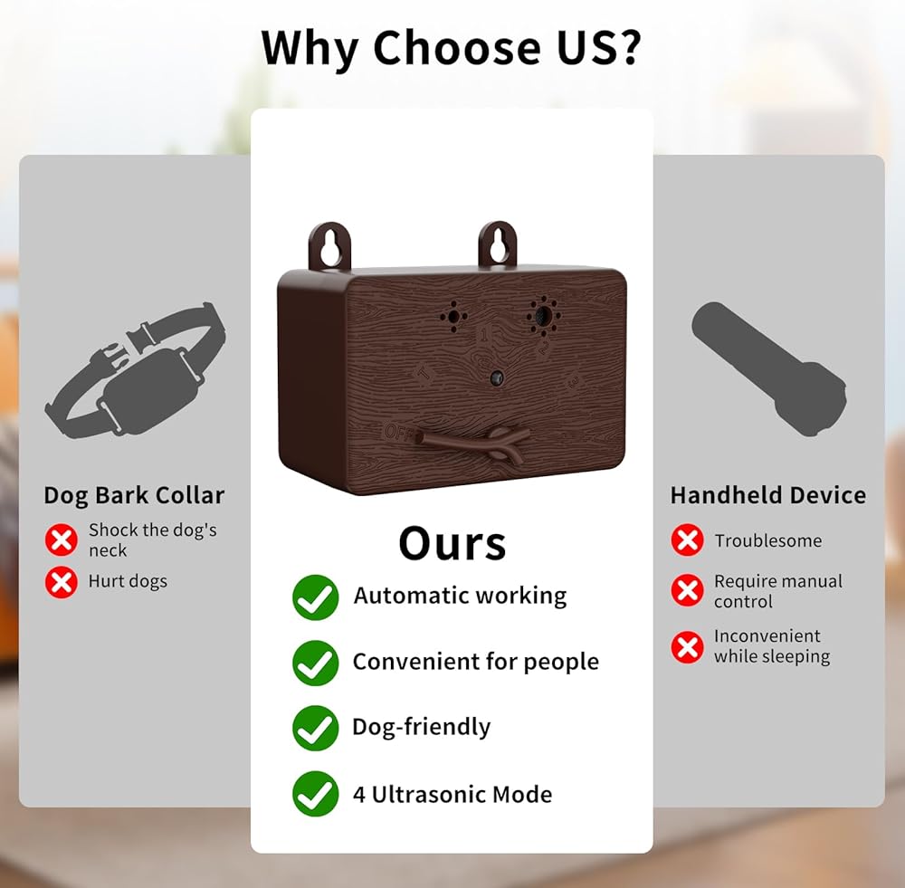 Features for anti barking device for dogs: