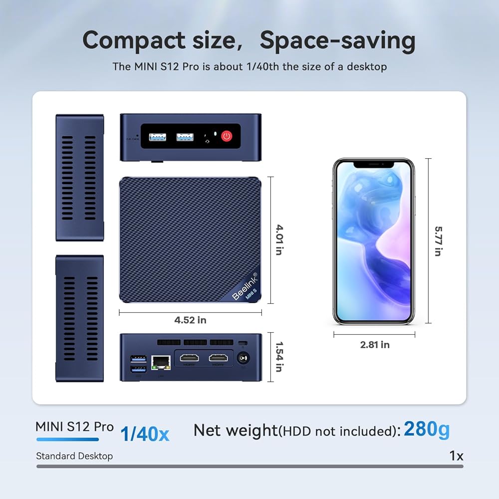Beelink Mini S12 Pro Mini PC ، 12th Intel Alder Lake-N100 (تصل إلى 3.4 جيجا هرتز) ، 16 جيجا بايت DDR4 RAM 500GB M.