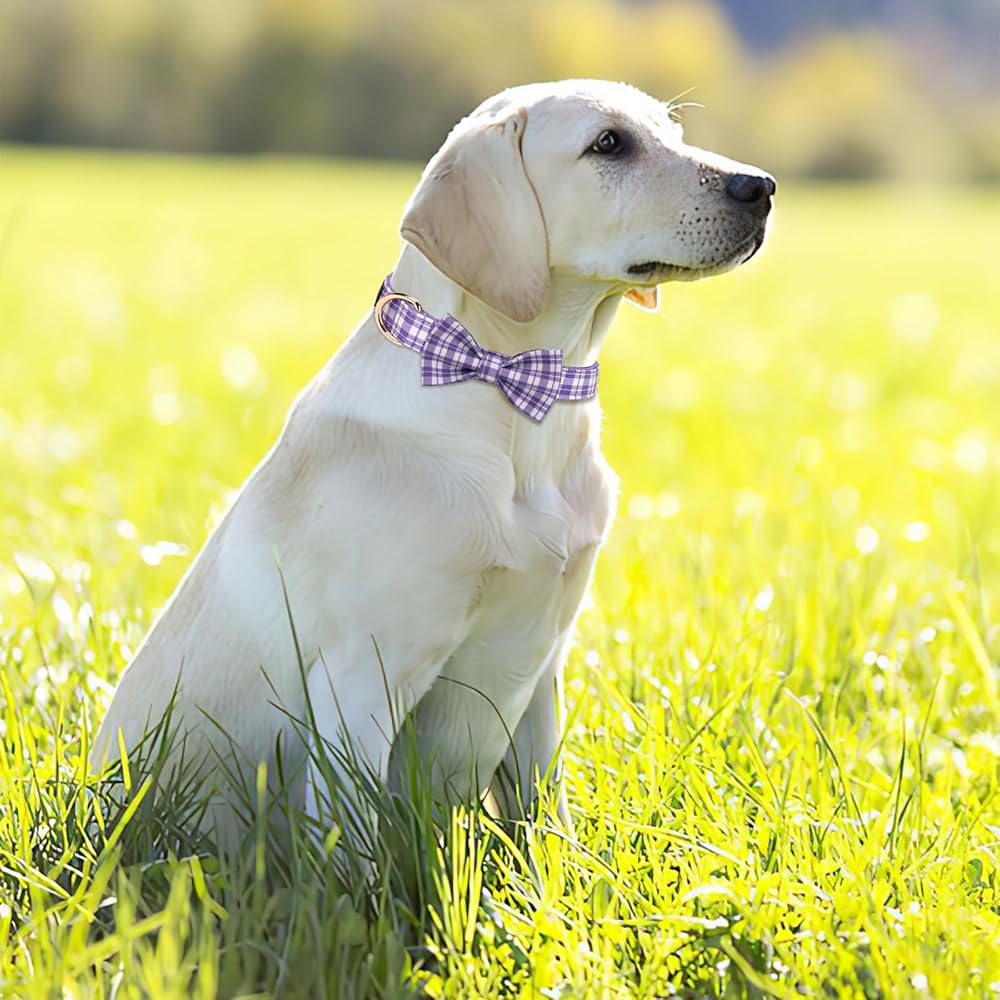 【مقاس قابل للتعديل】طوق L = الطول: 19 بوصة ~ 22 بوصة (49 ~ 55 سم)، العرض: 1 بوصة (2.5 سم)؛ ربطة عنق كبيرة: 4.3 بوصة × 2.4 بوصة (11 × 6 سم). يرجى استخدام مسطرة ناعمة ل قم بقياس محيط رقبة الجرو الخاص بك للتأكد من أن المقاس مناسب.
