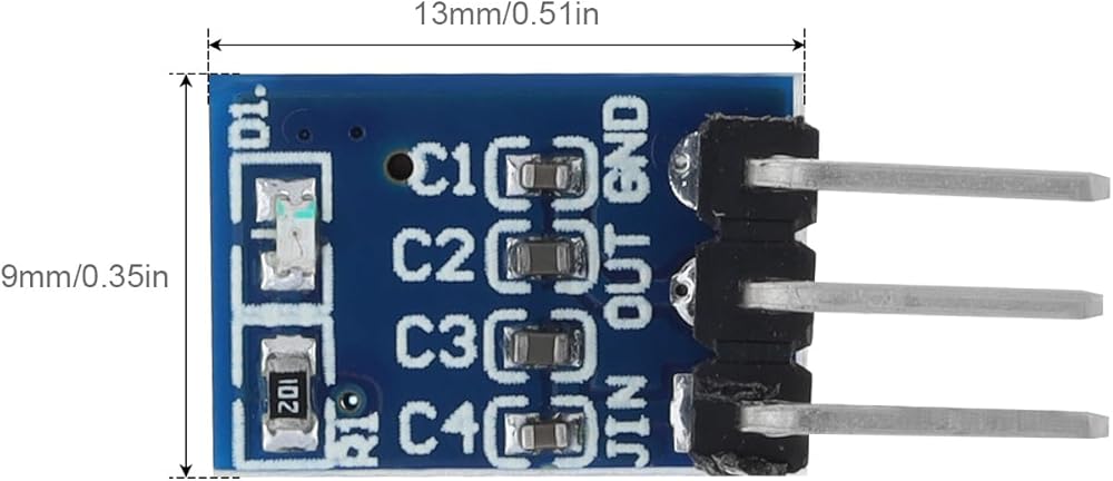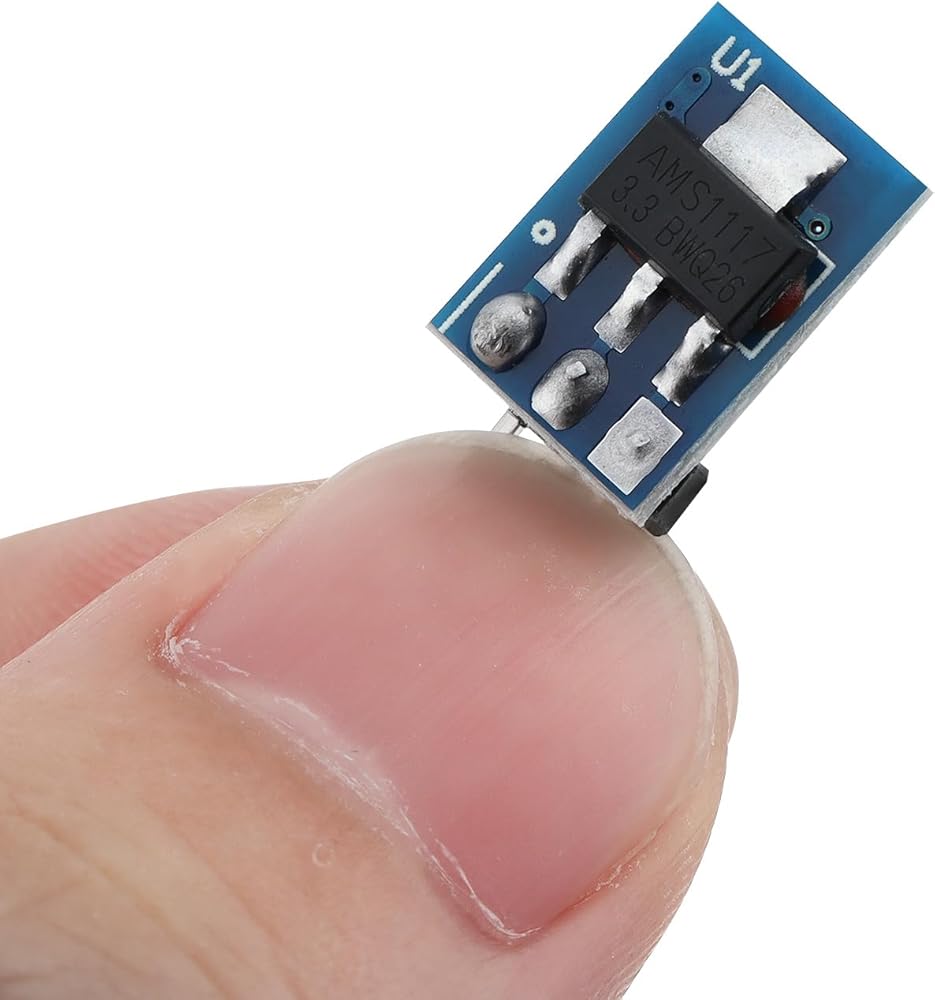 3 pins AMS1117-3.3 voltage regulator mini buck power supply module, can be applied to electronic devices which need 3.3V power supply, such as SCM project design, MCU development and more.
