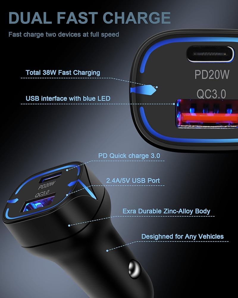 - 38W Dual-port fast charging charger, allowing you to enjoy fast charging of multiple devices