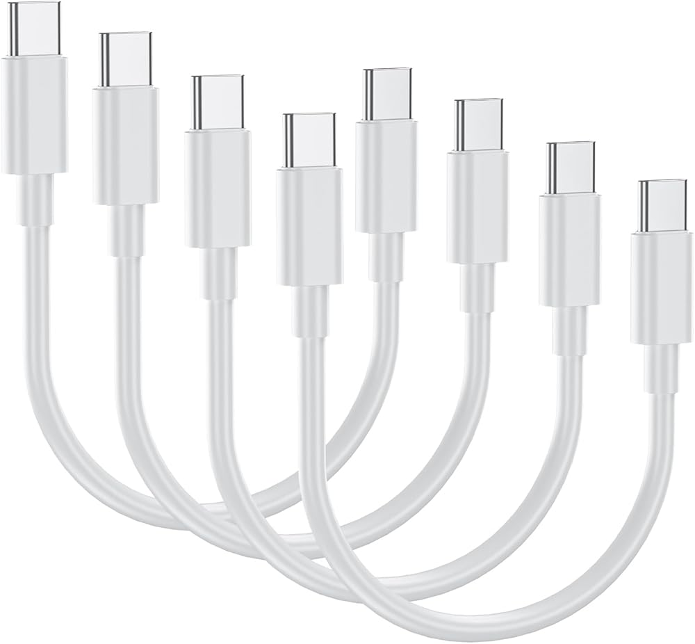 Short USB C to USB C Cable [4 Pack 1ft] 60W Type C Fast Charging Cord Charger Short USB-C Charger Cable for iPhone 15 15 Plus/15 Pro Max, MacBook Pro, iPad Pro Air 4, Galaxy S23+ S22 S21 Ultra-White