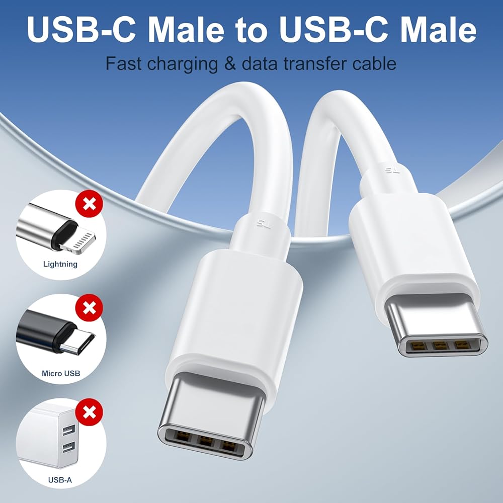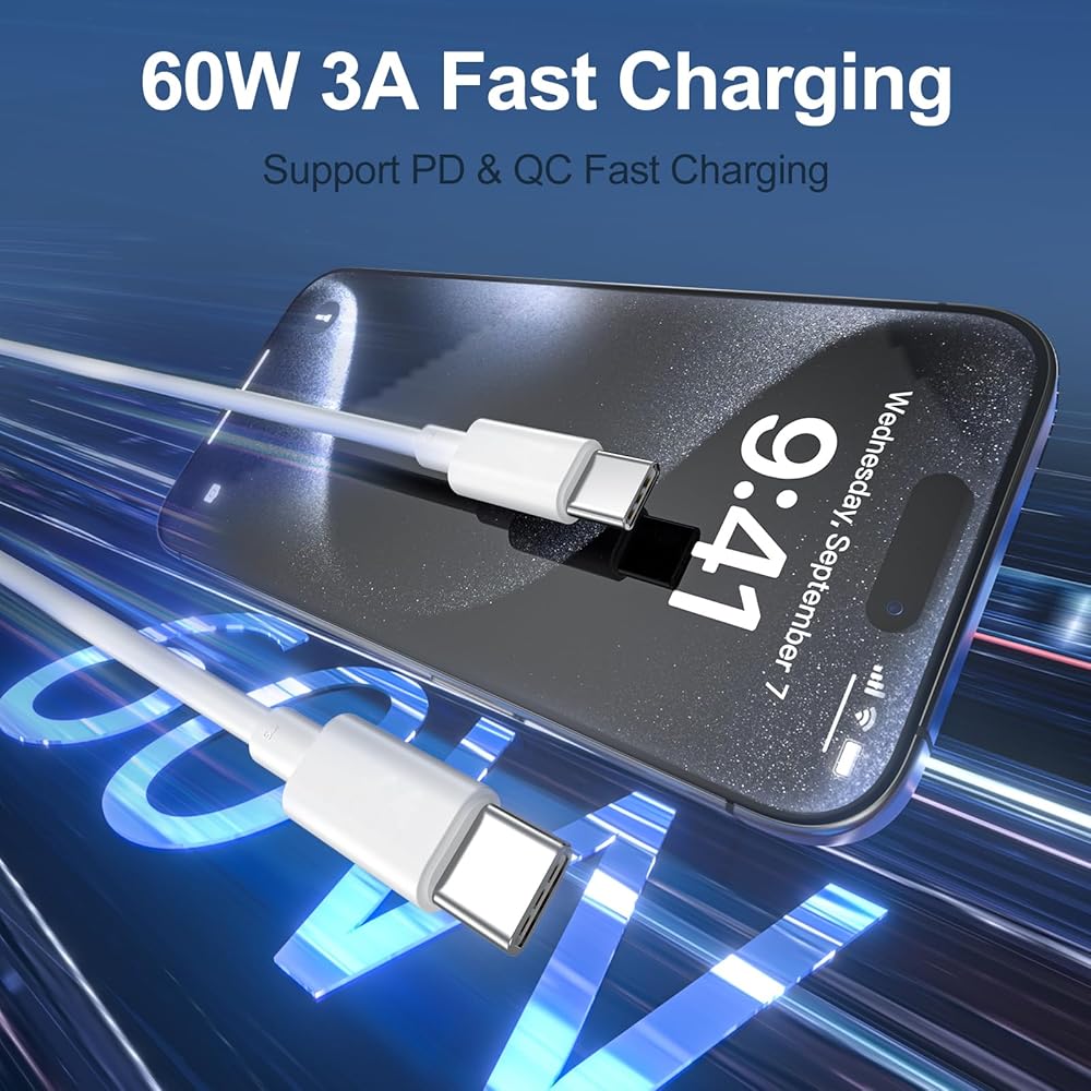 【Perfect Compatibility】USB C to C fast charging cable Compatible with virtually all USB-C devices including phones, tablets, and laptops. Suitable for iPhone 15/15 Plus/15 Pro/15 Pro Max, MacBook Air/Pro, iPad Mini 6, iPad Pro, iPad Air, Galaxy S23 Ultra/S23+/S23/S22 Ultra/S22+/S22/S21 Ultra/S21+/S21/S20/ S20+/S20 Ultra/Note 20, Steam Deck, Switch and more upcoming devices with USB-C port.