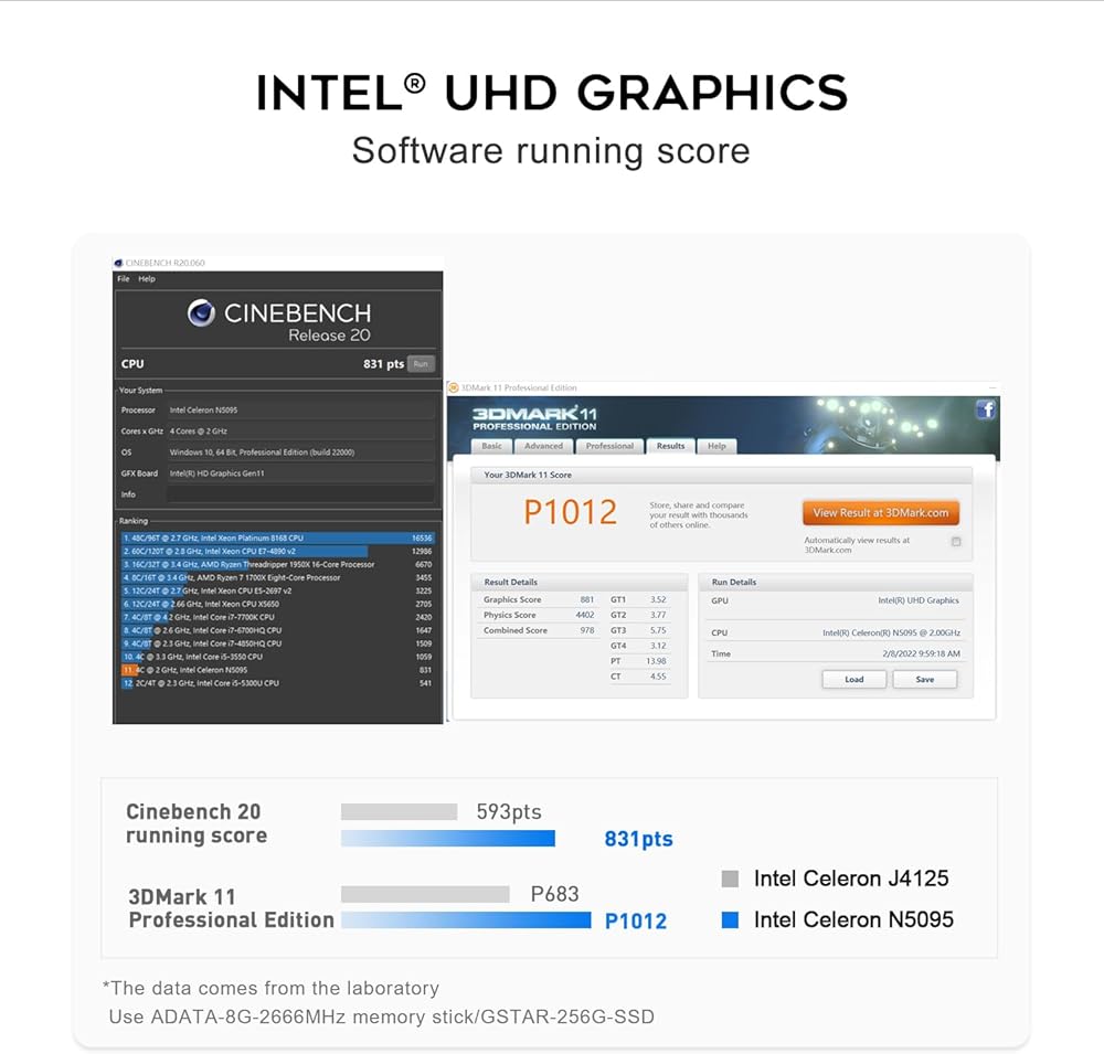 • 【High-Performance Processor】Beelink MINI S built-in faster 11 generation Intel Jasper Lake Processor N5095 base frequency 2.0GHz, up to 2.9 GHz. (4C/4T, 4M Cache) It runs much faster than i3-5005u, N3450, j3455, j4125, j4105 etc. chips. Loaded With 8gb DDR4 Ram, 256gb SSD, creates a very smooth experience for your visually home entertainment, streaming video, Web browsing, work, and games.