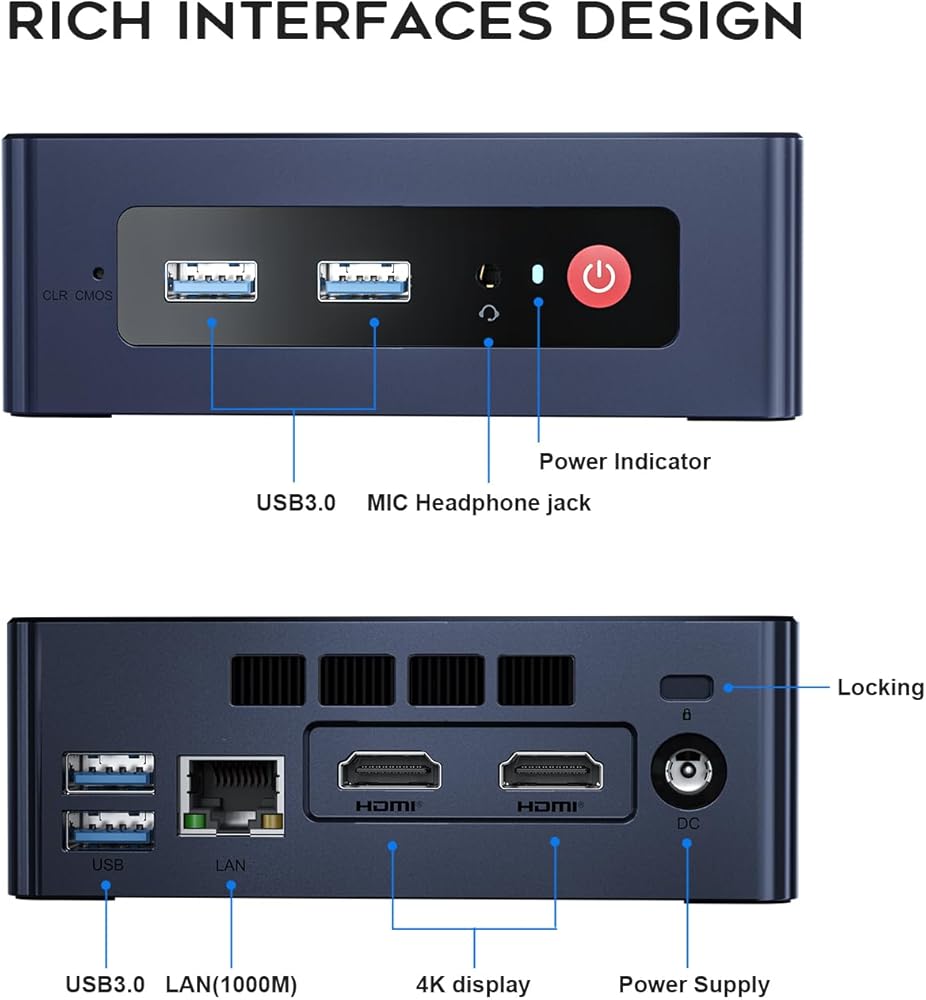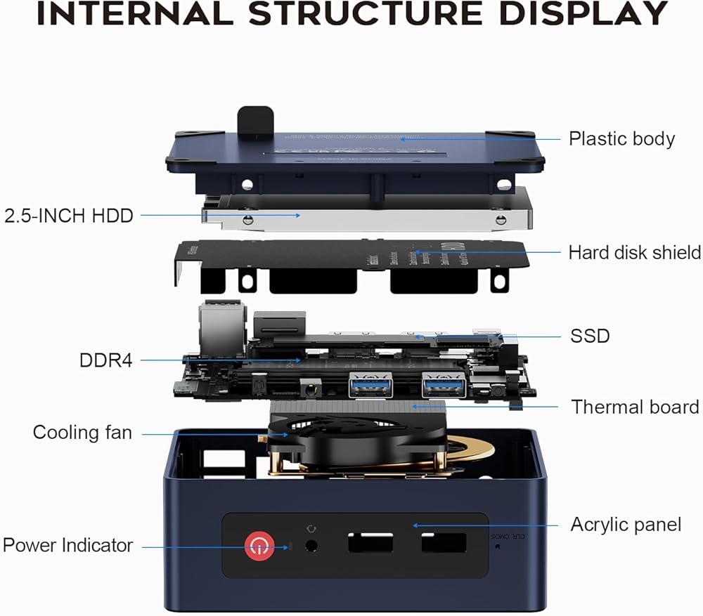 • 【Storage Expansion Options】The MINI S Mini Computer built-in 16GB DDR4, 512GB M.2 SSD (M.2 is much better than mSATA/HDD in terms of both smaller size and higher transfer performance) and supports up to 2TB of 2.5-inch SATA HDD / SSD.