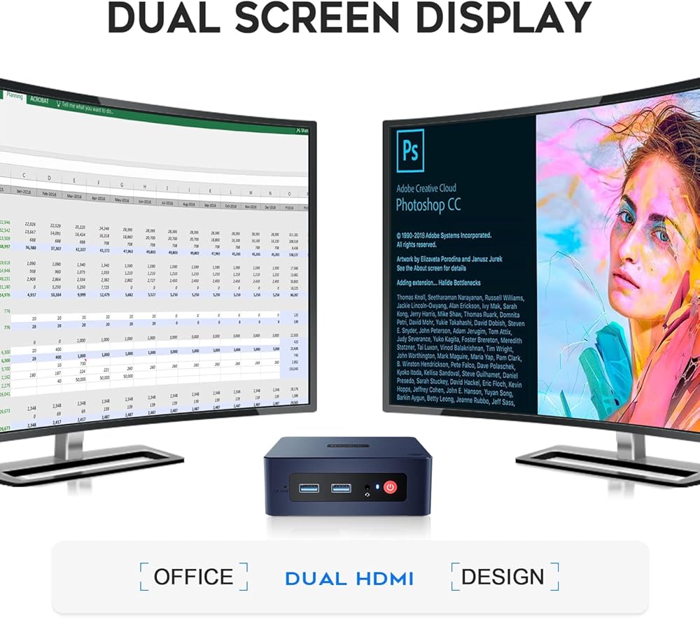 • 【Support 4K Dual Screen Display】The Mini Computer equipped with Intel UHD Graphics to support support 4K FPS video playback, which brings you first-class viewing .Dual HDMI allows you to connect two displays at the same time,thereby reducing waiting time and improving your work efficiency.
