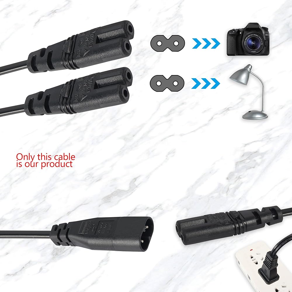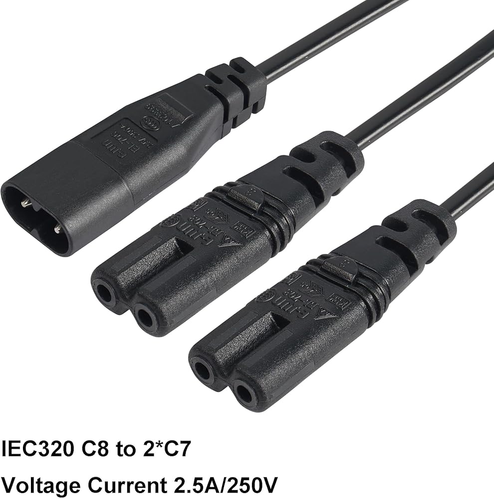 【C8 to Dual C7 Y Splitter Power Cable】Convert your C8 power cord to 2 Pole IEC 320 C7 female port ,convenient adapter cable , you will get an extra C7 power sources.