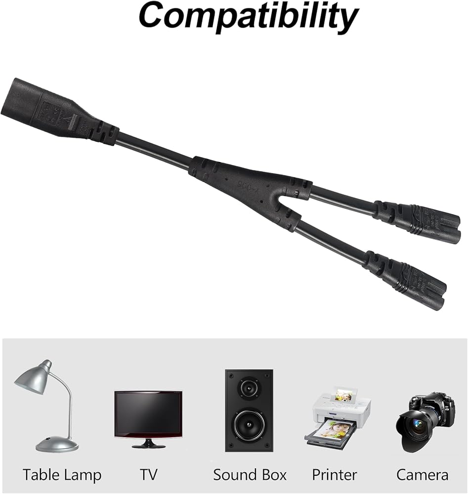【Application】The C8 to C7 Y split AC power cable is suitable for LCD, desk lamp, monitor, printer, projector, digital camera, laptop power adapter and other equipment.