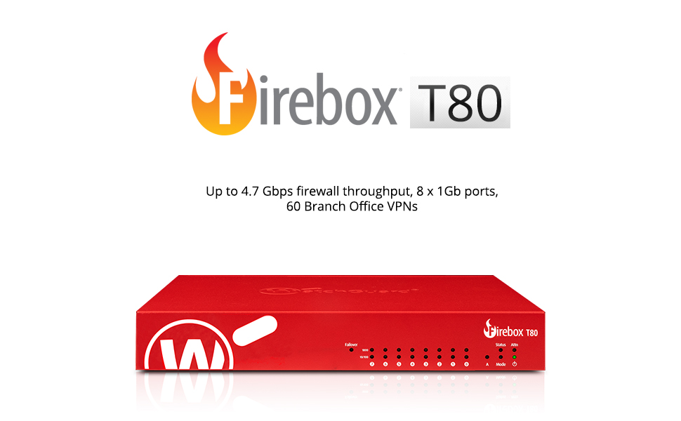 جهاز أمان WatchGuard Firebox T80 مع مجموعة أمان إجمالية لمدة عام واحد (WGT80641-US)