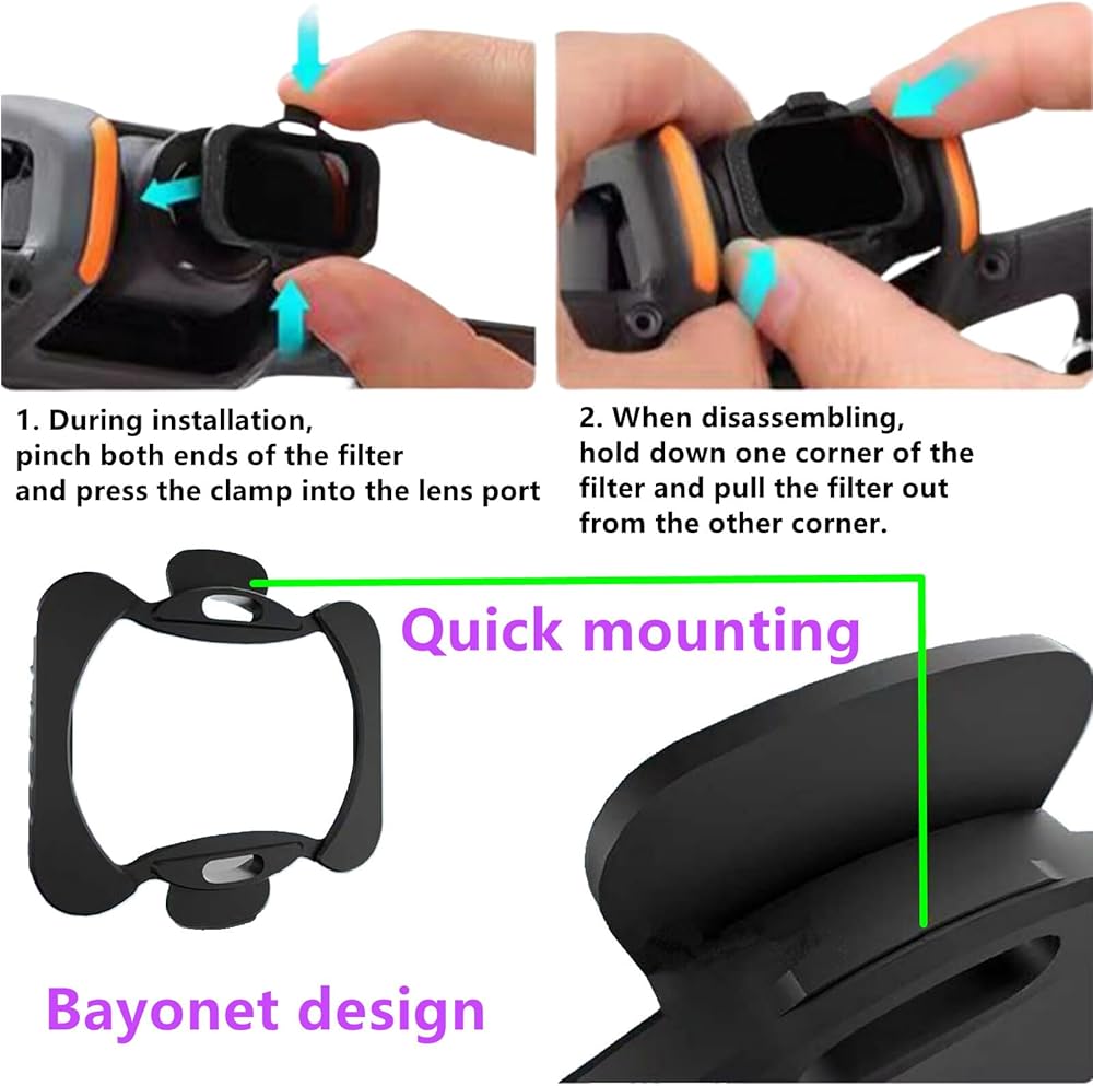 【Gimbal Safe&Secure Attach】Ultra lightweight and slim design, each filter only 0.8g, ensures each filter frame goes through a rigorous lightweight test and will not effect the gimbal and calibrations, it can be stored in the gimbal protector. Snap fit design, it will firmly tighten on the camera during flight.