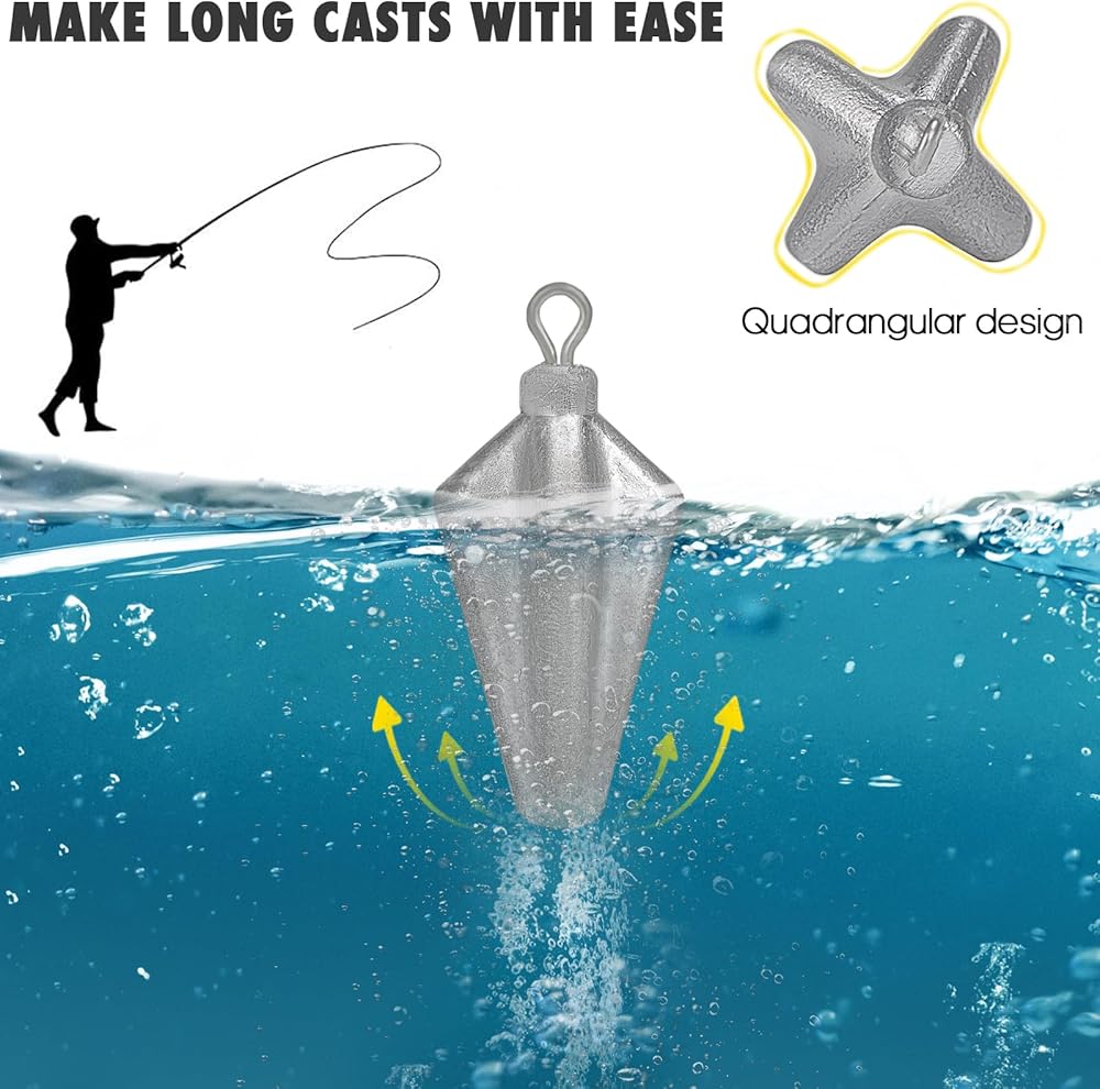 ENHANCED FISHING EXPERIENCE: Whether you're a recreational angler or a professional, our saltwater fishing weights offer superior performance to help you get the best out of your offshore or coastal fishing experience, perfect for ocean and pier fishing long casts, with a special prismatic design that stays put on sandy bottoms and in swift currents such as ocean waves