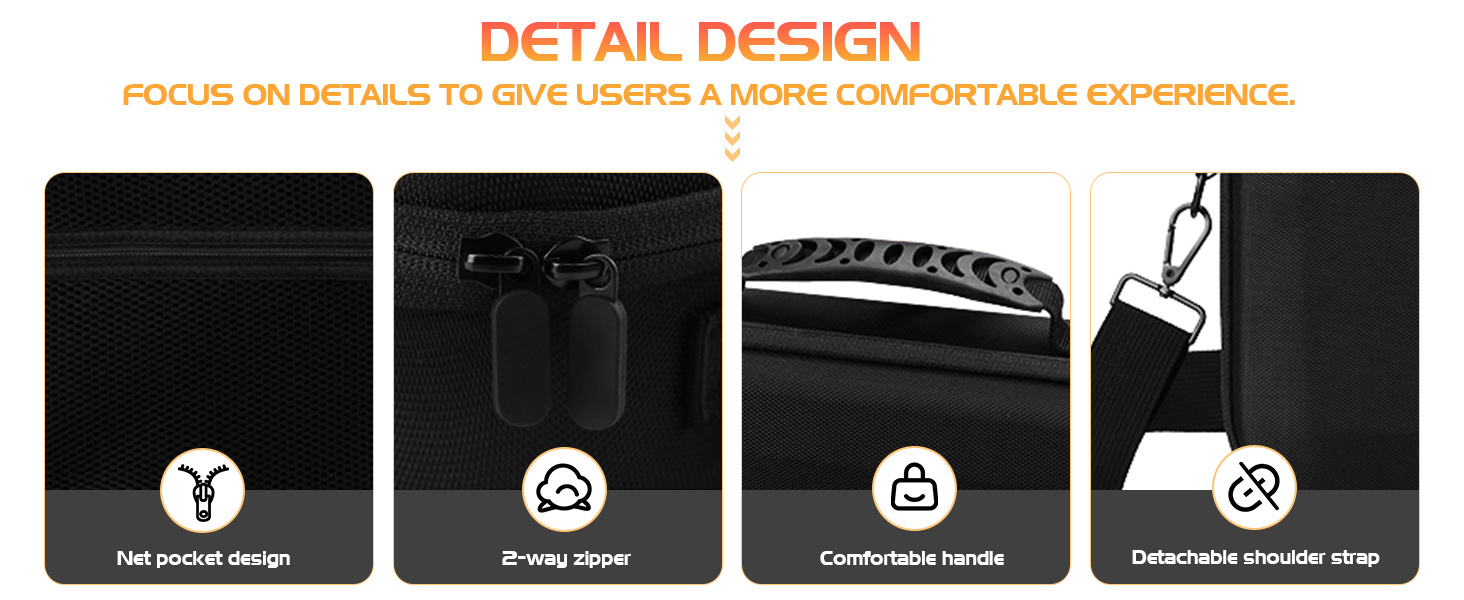 تفاصيل مدروسة: يمكن للحافظة الصلبة الصغيرة 4 تخزين طائرات بدون طيار × 1، وأجهزة التحكم عن بعد × 1، والبطاريات × 4، ومركز شحن ثنائي الاتجاه × 1. حقيبة شبكية بالأعلى لمراوح التخزين، وكابلات البيانات، والمرشحات، وكابلات التحويل وغيرها من الملحقات