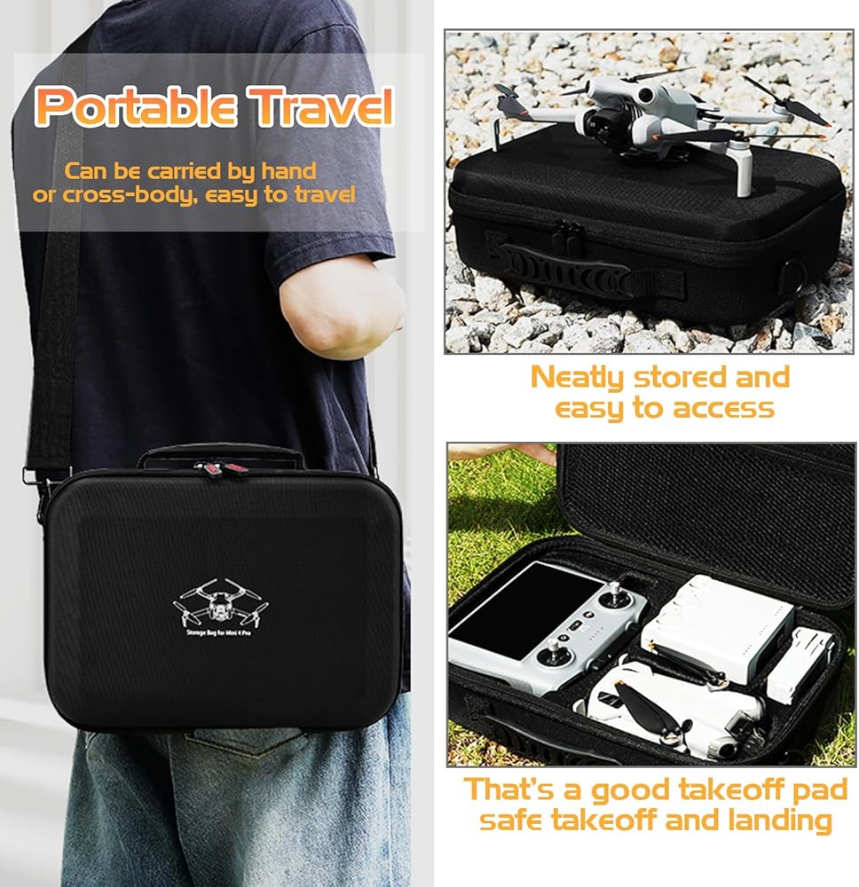حماية شاملة: حقيبة الحمل الصغيرة 4 مصنوعة من مواد النايلون مع امتصاص ممتاز للصدمات، ومقاومة الضغط، ومقاومة الرذاذ، مما يوفر حماية طويلة الأمد لطائرتك بدون طيار وجهاز التحكم عن بعد