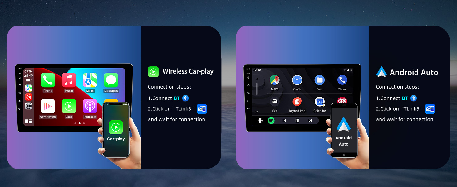 【تشغيل السيارة المدمج/Android Auto】: يدعم الراديو تشغيل السيارة السلكية اللاسلكية/Android التلقائي، خذ ما تريد القيام به على هاتفك أثناء القيادة - إجراء المكالمات واستخدام الخرائط والاستماع إلى الموسيقى والوصول إلى الرسائل.