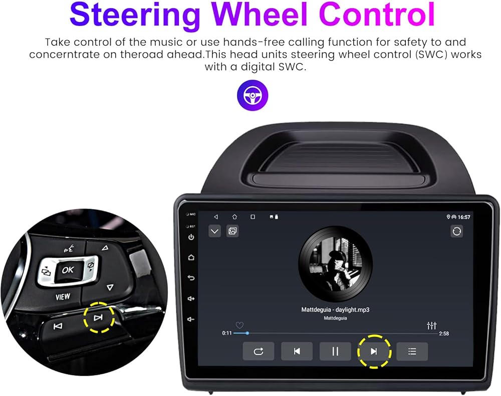 【نظام Android 13】: شاشة لمس IPS مقاس 10.1 بوصة، ذاكرة وصول عشوائي 1 جيجابايت + ذاكرة وصول عشوائي 32 جيجابايت، تدعم WIFI/BT، راديو FM RDS. يمكنك تنزيل التطبيقات.