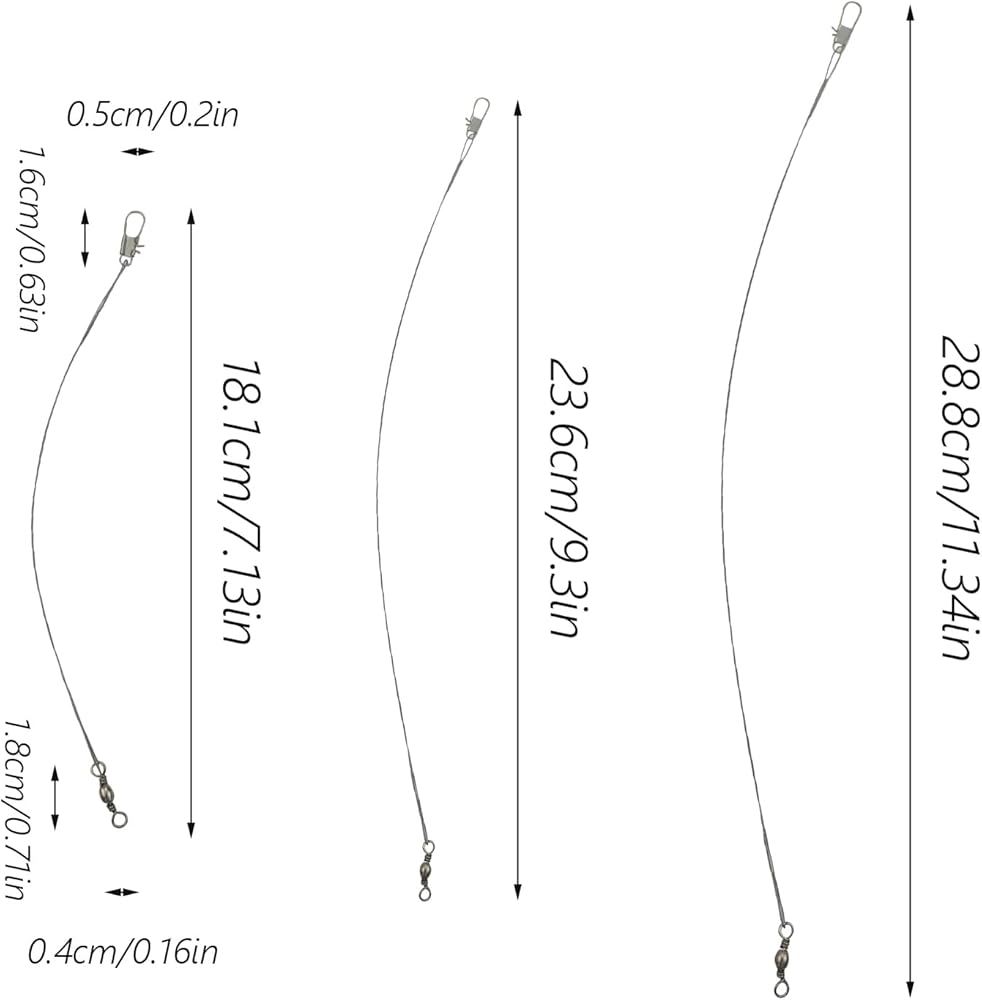 • Package Content: You will receive 60pcs fishing leaders in 3 different sizes: 7.13 inches/18.1cm, 9.3 inches/23.6cm, 11.34 inches/28.8cm, and 20pcs of each size.