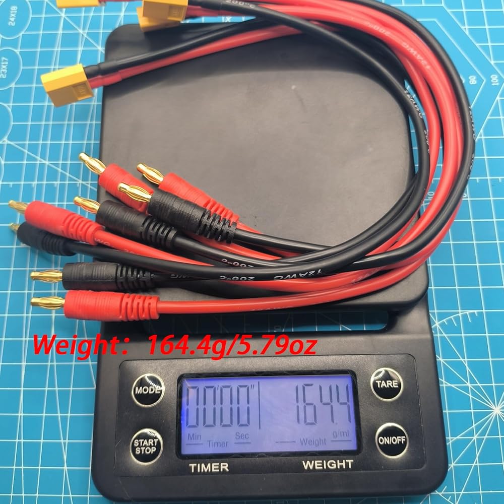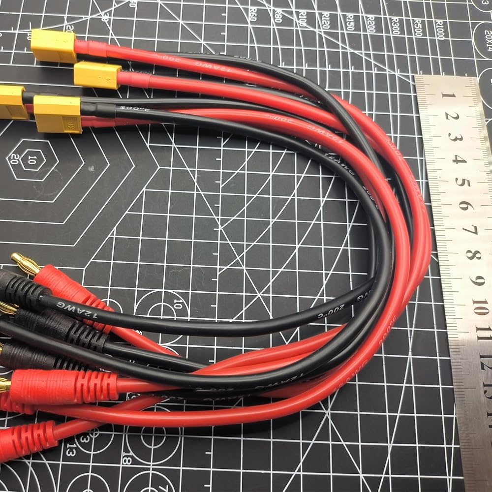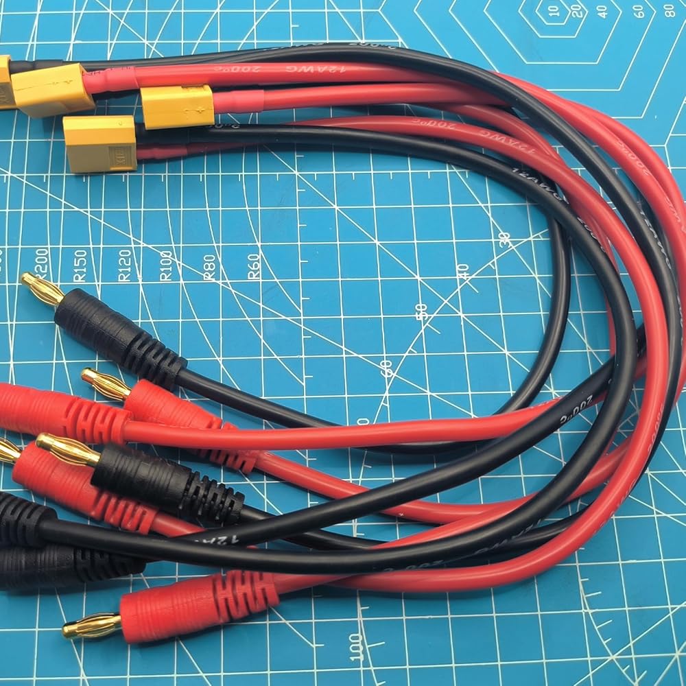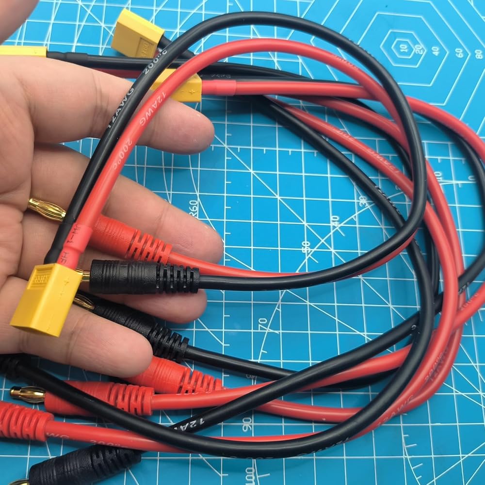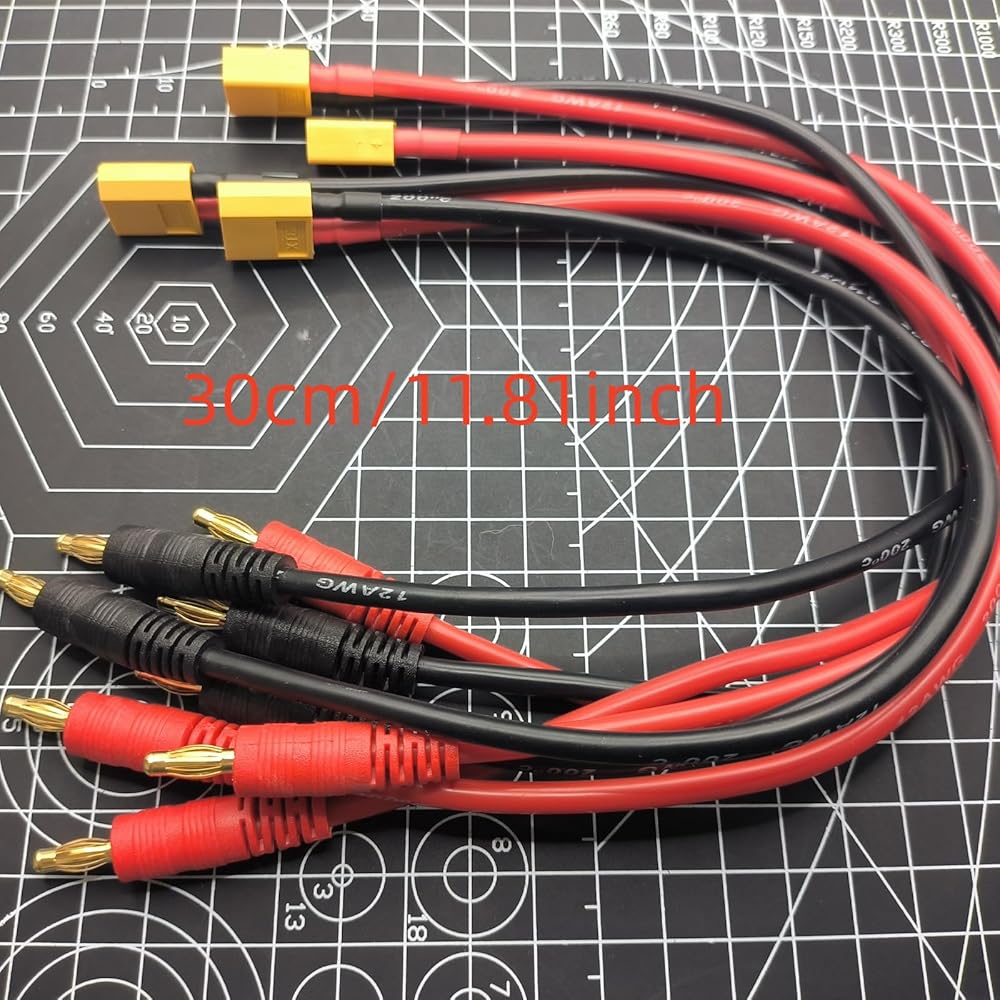 - موصل الإدخال: قابس موزة ذكر 4 مم، موصل الإخراج: XT60، نوع السلك: 12awg سيليكون، الطول: 30 سم / ~ 12 بوصة
