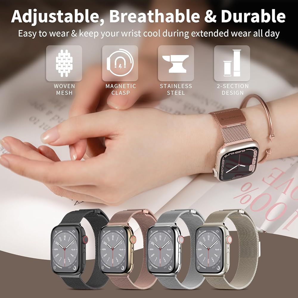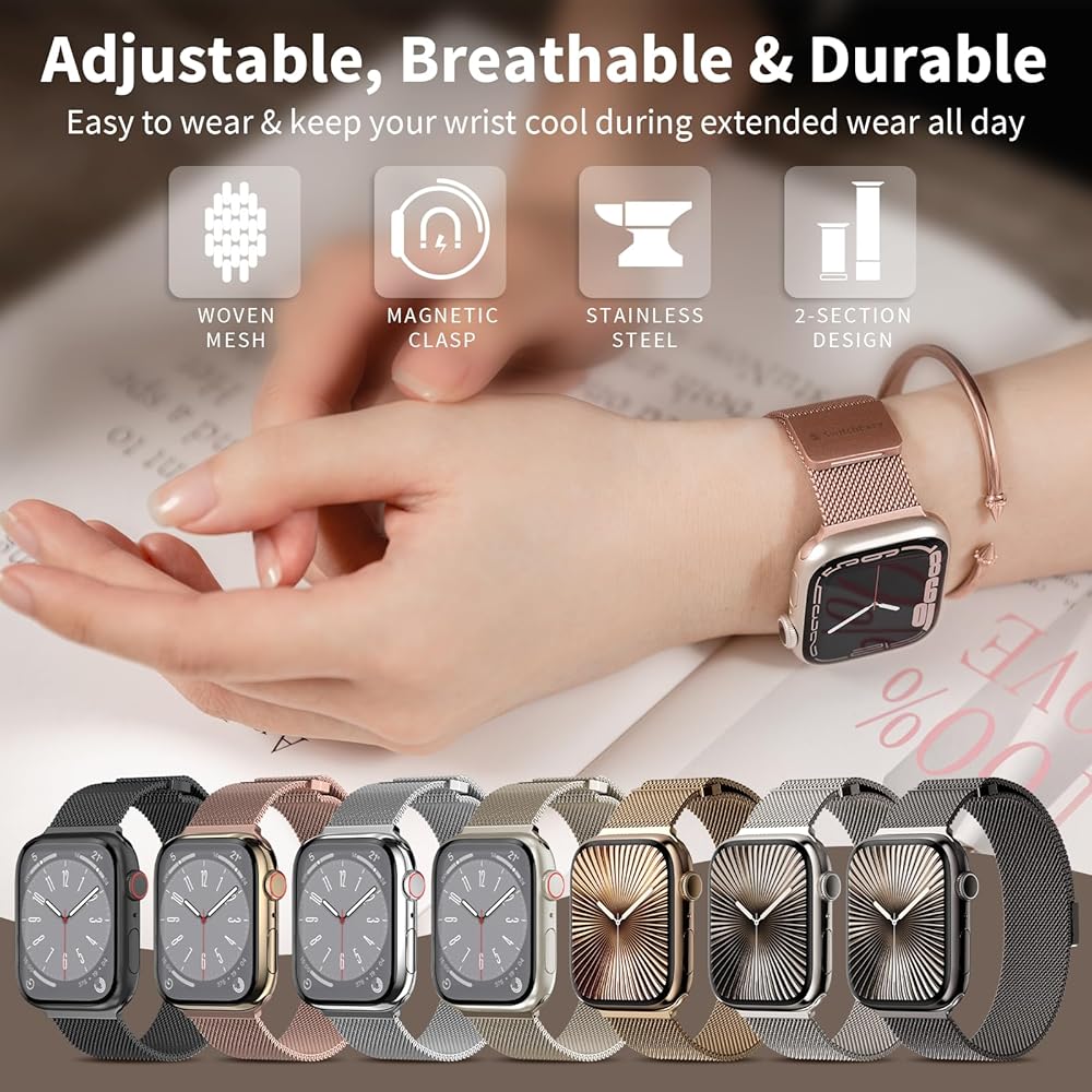 [ملحق رائع] - رفيقك المثالي في خزانة الملابس للعمل والحفلات والسفر. متوافق مع ساعات أبل سلسلة 10، 9، SE، 8، 7، 6، 5، 4، 3، 2، 1.