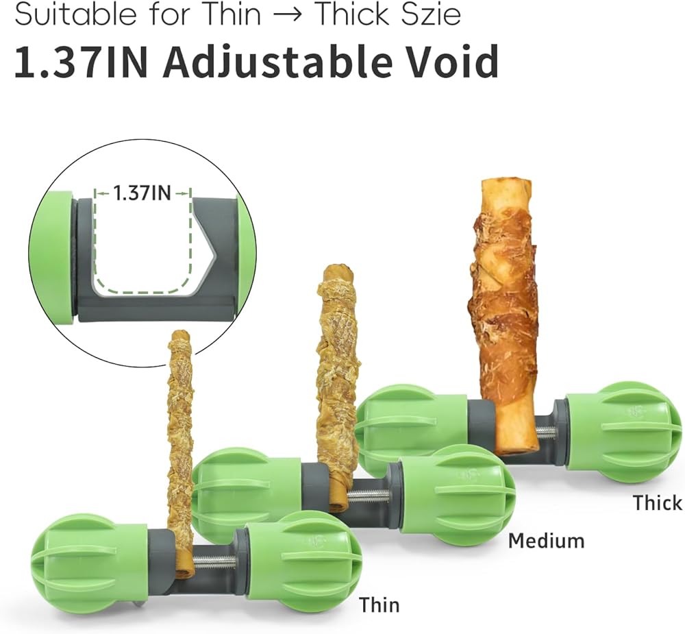 【أمان معزز】: تم تصميم الحامل الخاص بنا ليمسك الجزء الأخير من عصي أو عظام الفتوة بشكل آمن، مما يمنع كلبك من ابتلاعه ويقلل من خطر مخاطر الاختناق.