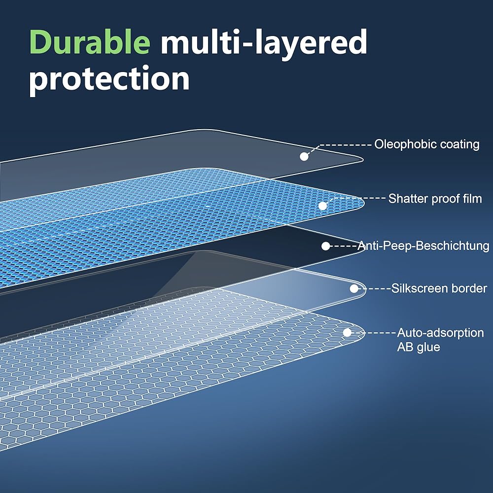 [Privacy Protection] This screen protector has better privacy properties than other materials. The screen is only visible to the user, making your personal, private and sensitive information invisible to strangers and providing the most comprehensive protection.