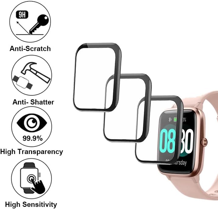- واقي شاشة مغطى بالكامل ثلاثي الأبعاد: مادة PMMA، يحمي شاشة الساعة الذكية بالكامل بما في ذلك حافة الشاشة