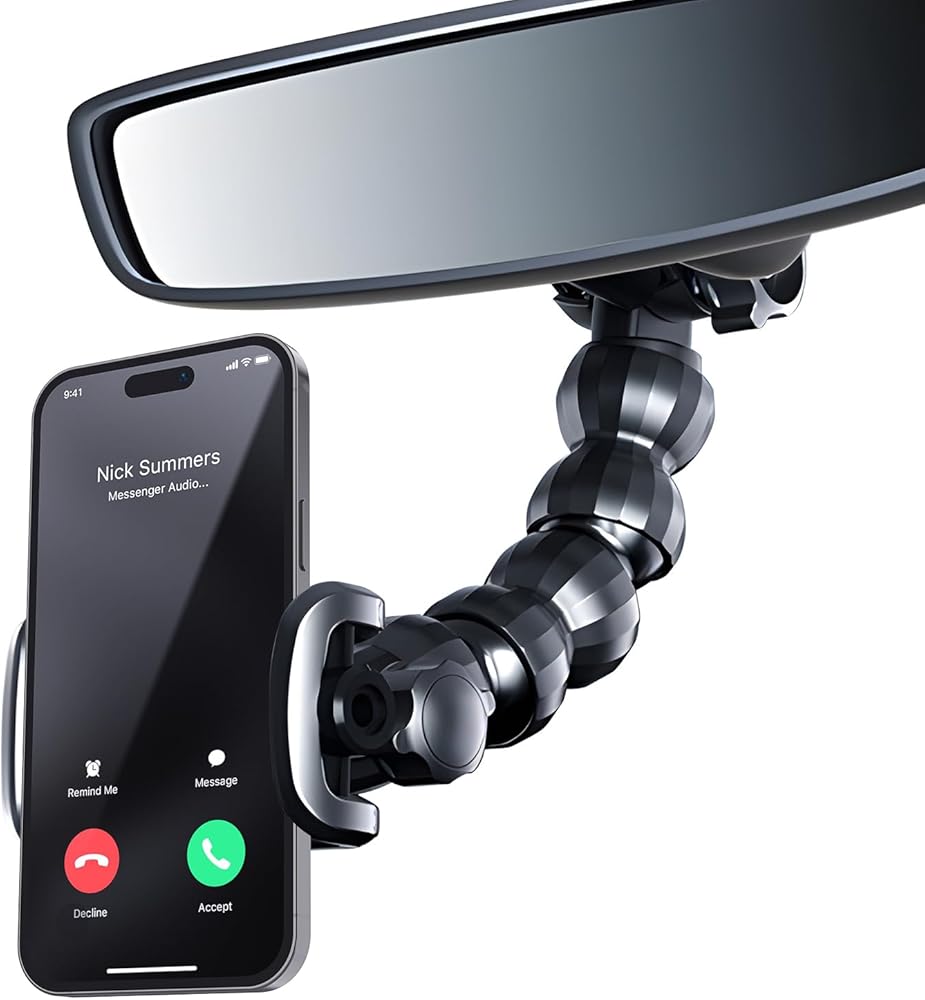 SooPii Rear View Mirror Phone Holder, Multi-Angle Adjustment Rotational and Retractable Phone Clip for lPhone15,GalaxyS24 and more 4-7'' Devices