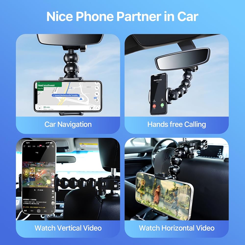 • 【Elevate Your In-Car Experience】Experience ultimate convenience and safety on the go with the SooPii Rear View Mirror Phone Holder.This multi-angle adjustment phone clip seamlessly integrates into your car, allowing you to keep your eyes on the road and your hands on the wheel.Its secure clamp and silicone padding hold your device firmly in place, protecting it from scratches and damage, while the adjustable design ensures a perfect fit every time.
