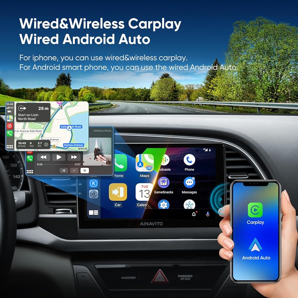 دعم Apple CarPlay، Android Auto، النسخ المتطابق: يدعم اتصالات CarPlay/Android Auto اللاسلكية والسلكية. ما عليك سوى توصيل هاتفك بالراديو عبر البلوتوث أو كابل USB 4/6 PIN، ويمكنك الوصول إلى معظم وظائف هاتفك في وضع CarPlay/Android Auto، بما في ذلك الرد على المكالمات وإرسال الرسائل النصية وتشغيل الموسيقى والتنقل في الخرائط. بالإضافة إلى ذلك، يدعم الراديو النسخ المتطابق السلكي واللاسلكي، مما يسمح بالتفاعل السلس بين هاتفك وراديو السيارة.