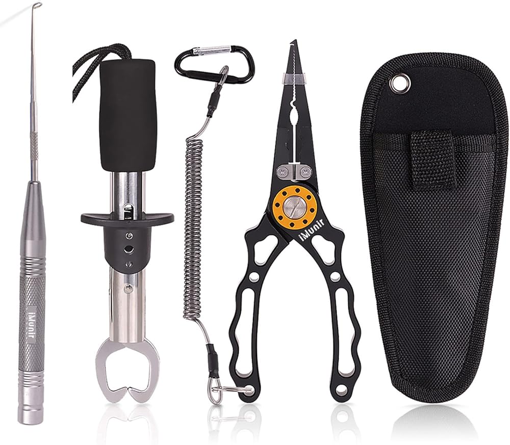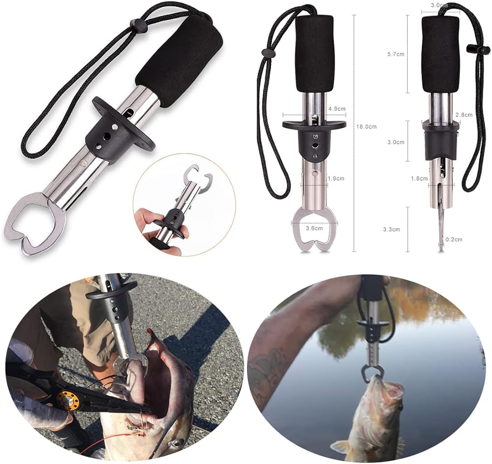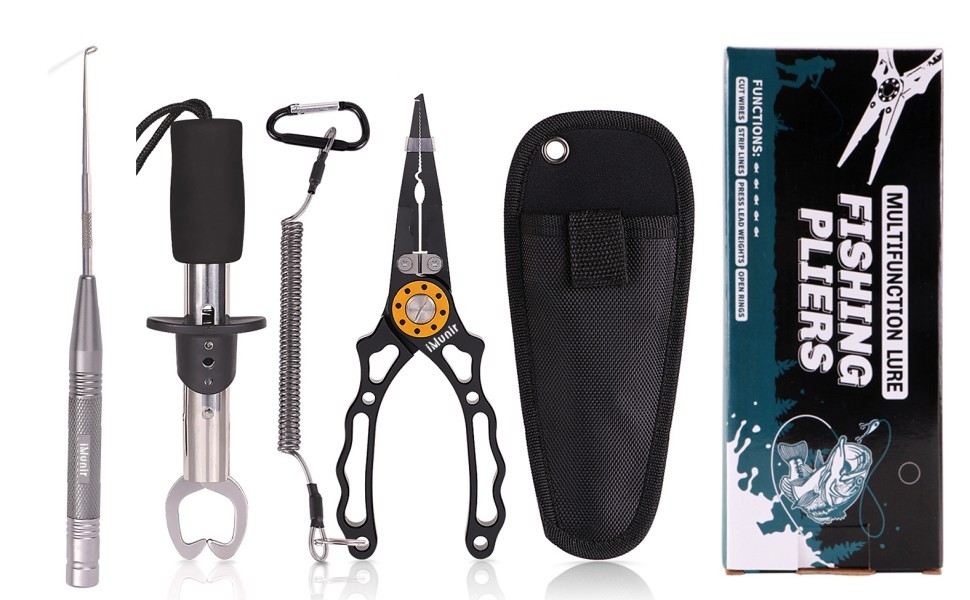 Perfect Gift: Cool gift for angler friends or family. Such as Father's Day or Valentine's Day . Package including: 1*fishing plier ,1*portable nylon bag,1*coil lanyard with carabiner, 1*Fish Lip Gripper,1*Fish Hook Remover