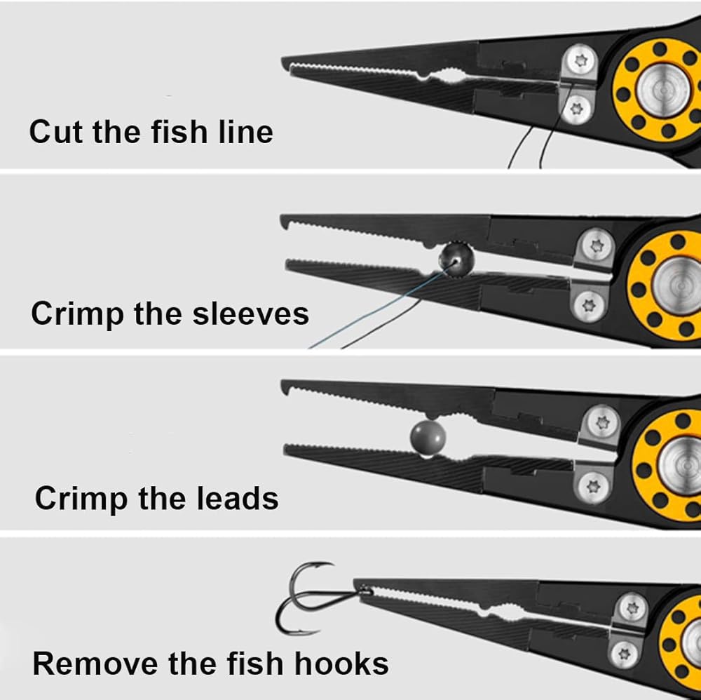 Application: This multifunctional fishing pliers kit good for cut the fishing line, open the rings, crimp the leads and remove the fishing hooks. The plier with the super hard tungsten carbide cutters, good for cut more of type fishing line and easy to knotting the fishing line.