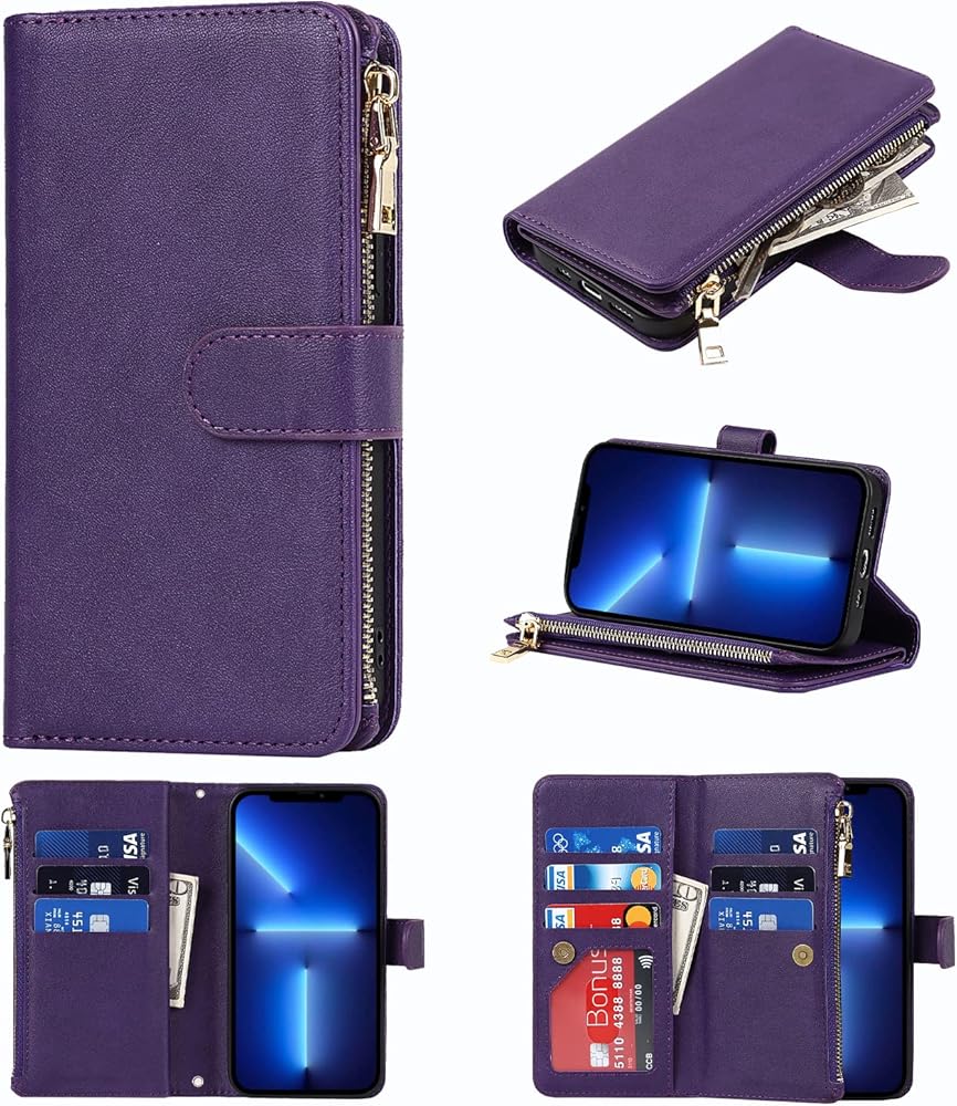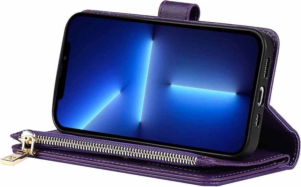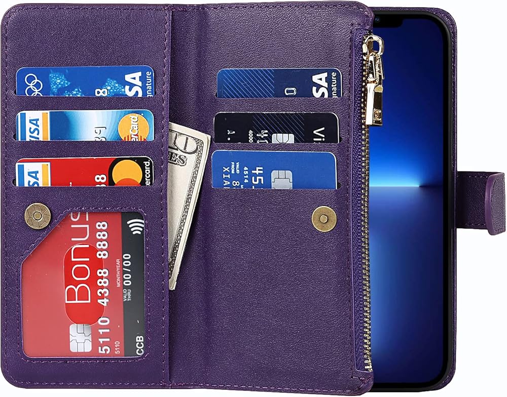 [Wallet Feature]This wallet case features 9 card holders ,2 side pocket for money or additional cards. The effective and stylish magnetic lock design secures your money and cards. The series wallet case can switched to a horizontal position and act as a firm stand. Wrist strap makes it easy to be carried around. carry your ID, credit and debit cards, and cash without taking your wallet with you