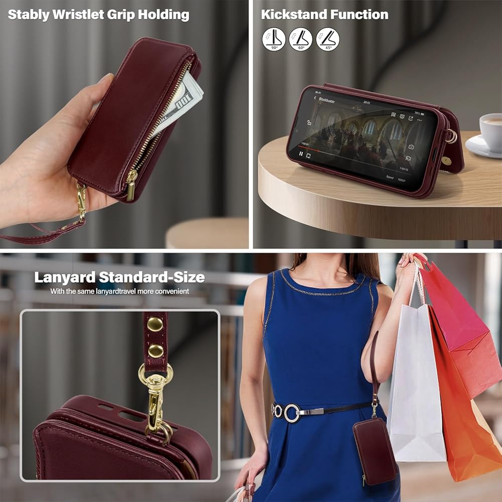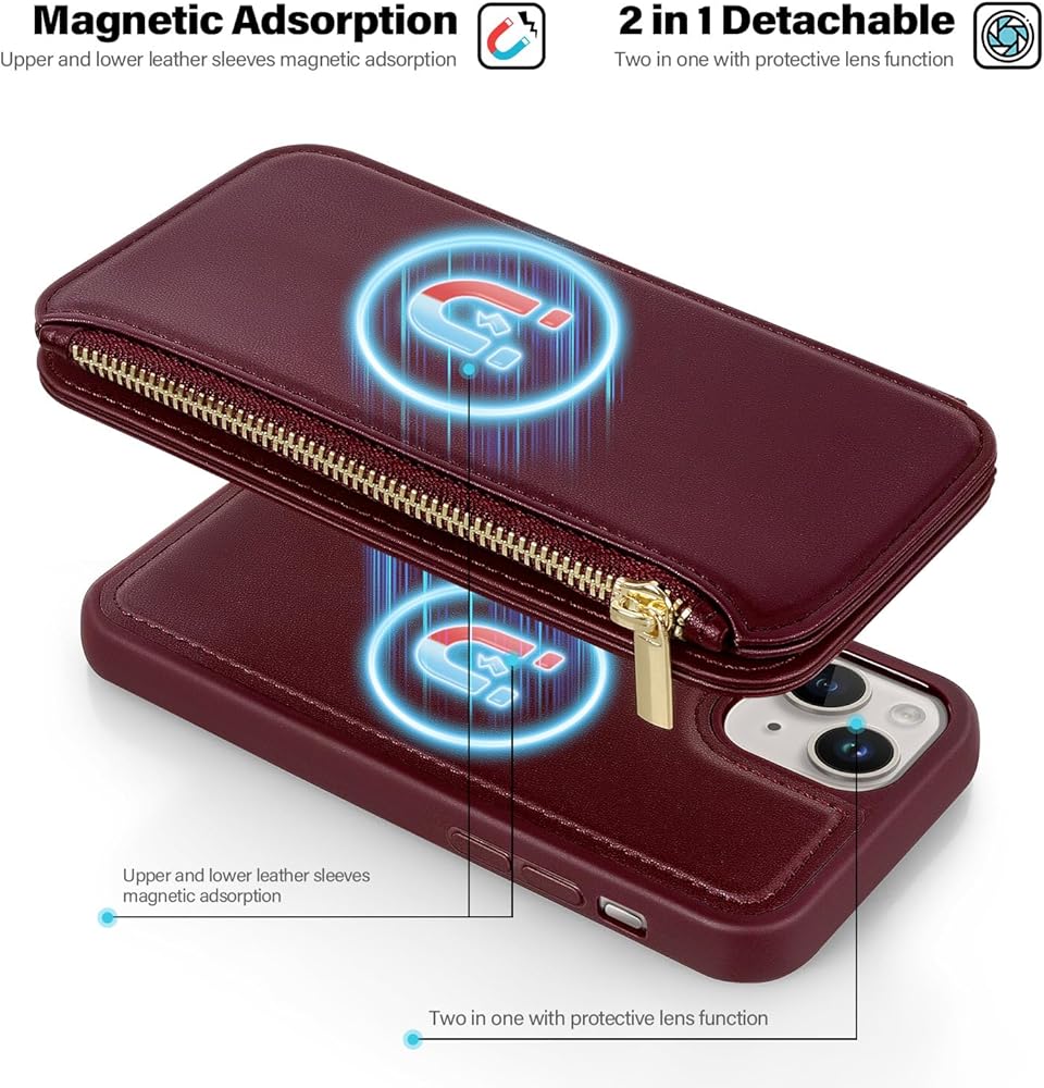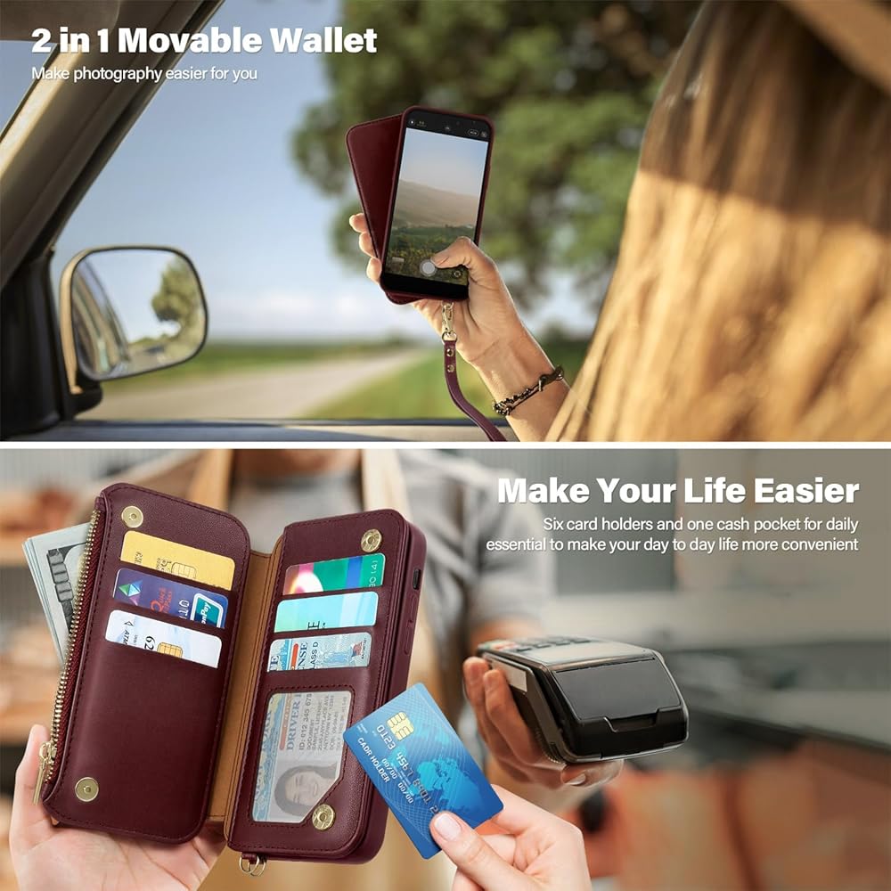 The detachable wallet phone case design, the powerful combination of magnetic phone case and wallet, makes it easier for you to take photos, car navigation, and more when removing the wallet. When the phone case is combined with the wallet, it can effectively protect your camera from wear and damage。