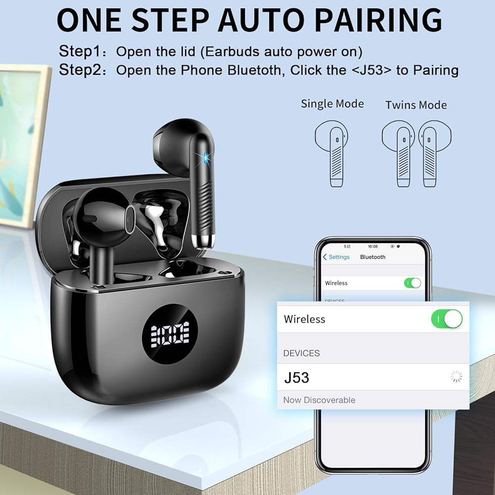 Bluetooth Technology and One Step Pairing: Wireless earbud adopt upgraded Bluetooth technology, which offer you an unparalleled audio experience with faster transmission speed, stronger connection stability, and longer range of bluetooth. No distortion and latency to make your music and phone calls worry free.