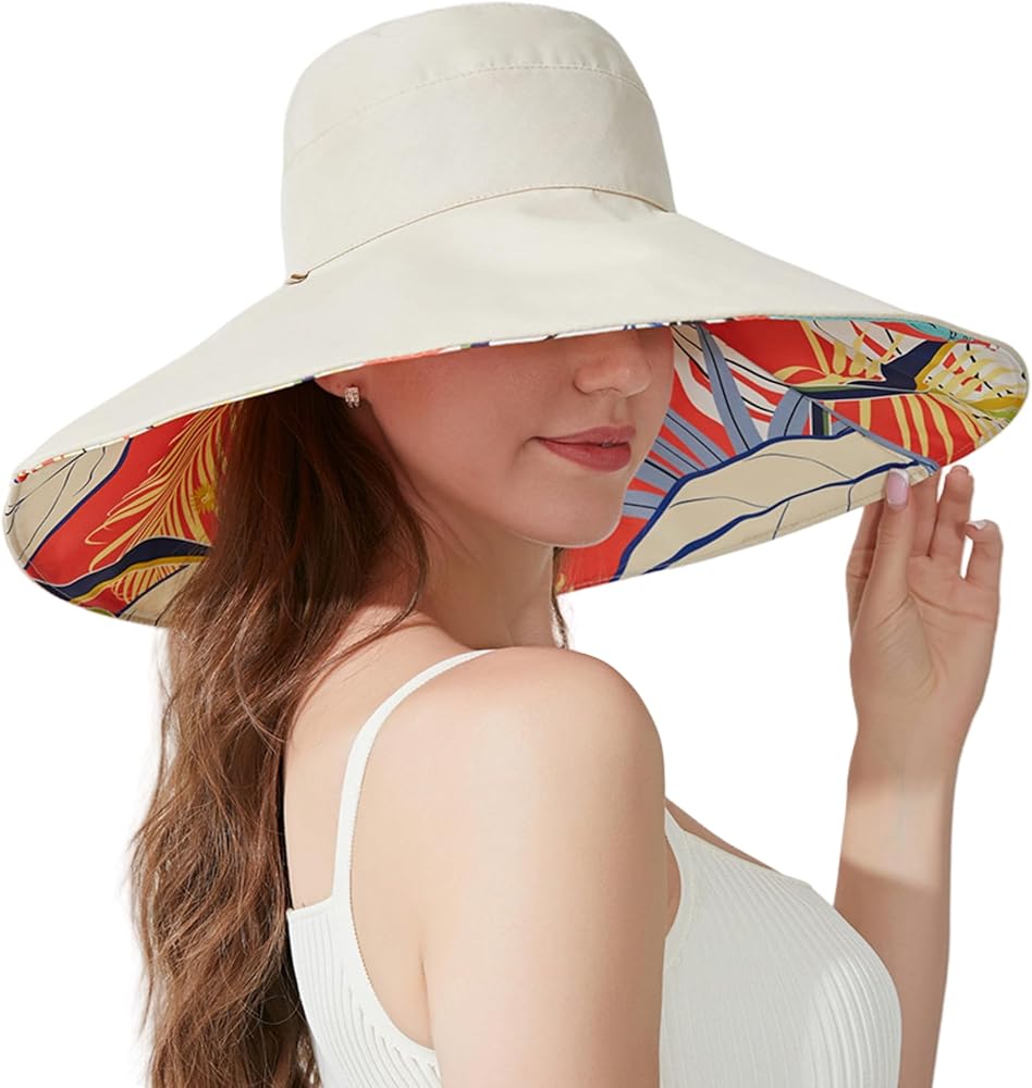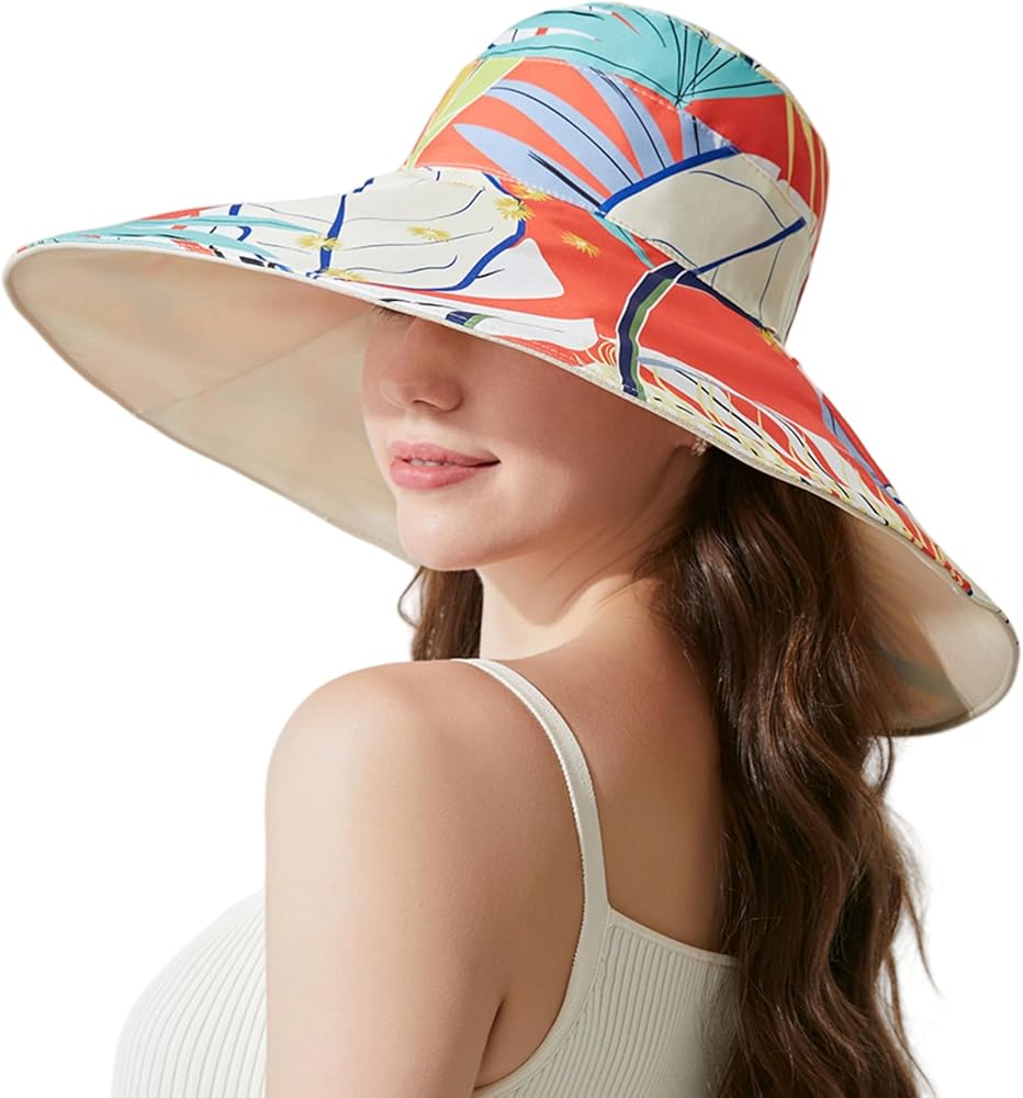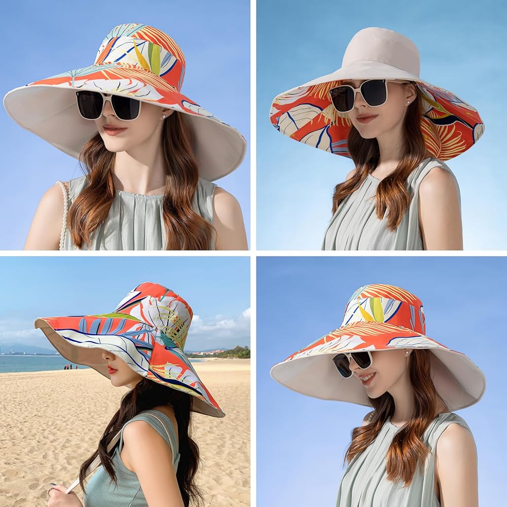 Caviotess Reversible Floral Wide Brim Sun Hats for Women Packable UV Protection Hat Wired Edge Summer Beach Bucket Hat