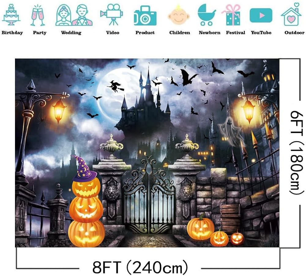 خلفيات الهالوين مقاس 8 × 6 أقدام للتصوير الفوتوغرافي وخلفية الهالوين وقلعة الخفافيش واليقطين وخلفية التصوير الفوتوغرافي لديكورات الحفلات ومستلزمات تزيين الصور لافتة خلفية DH-704