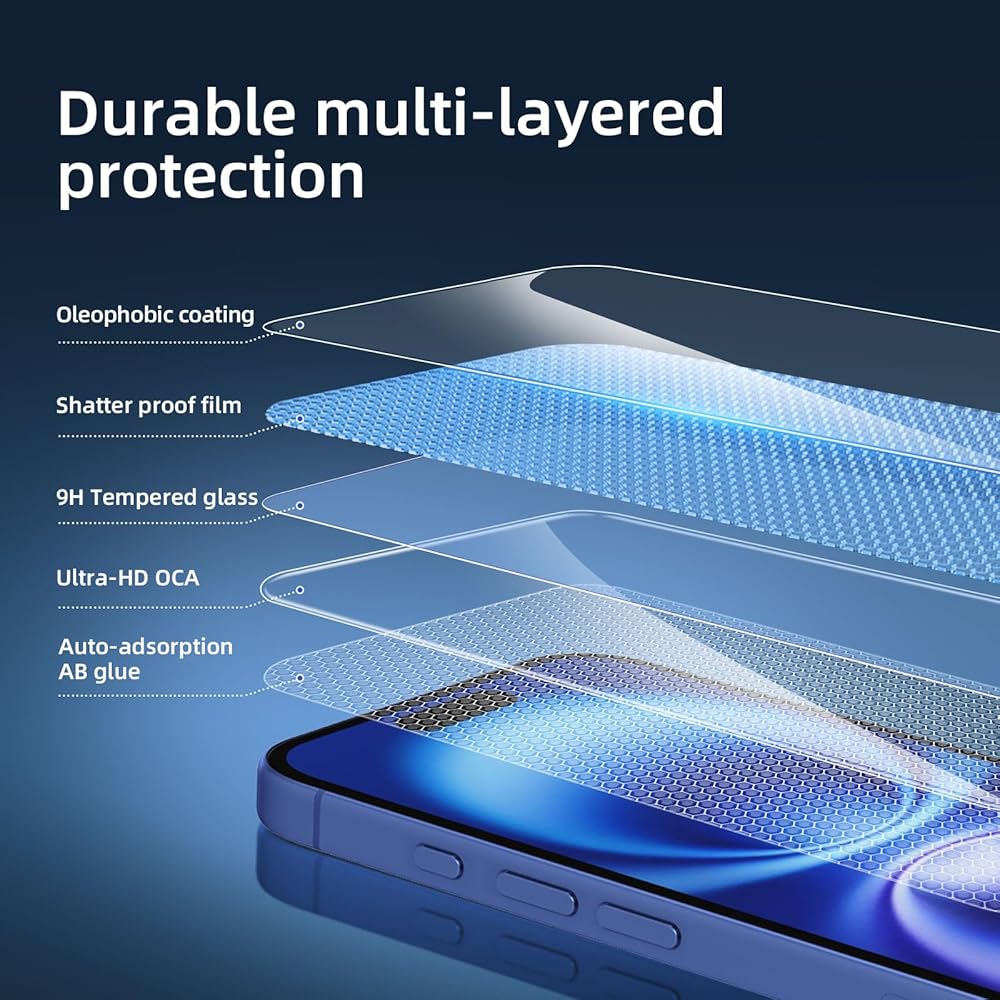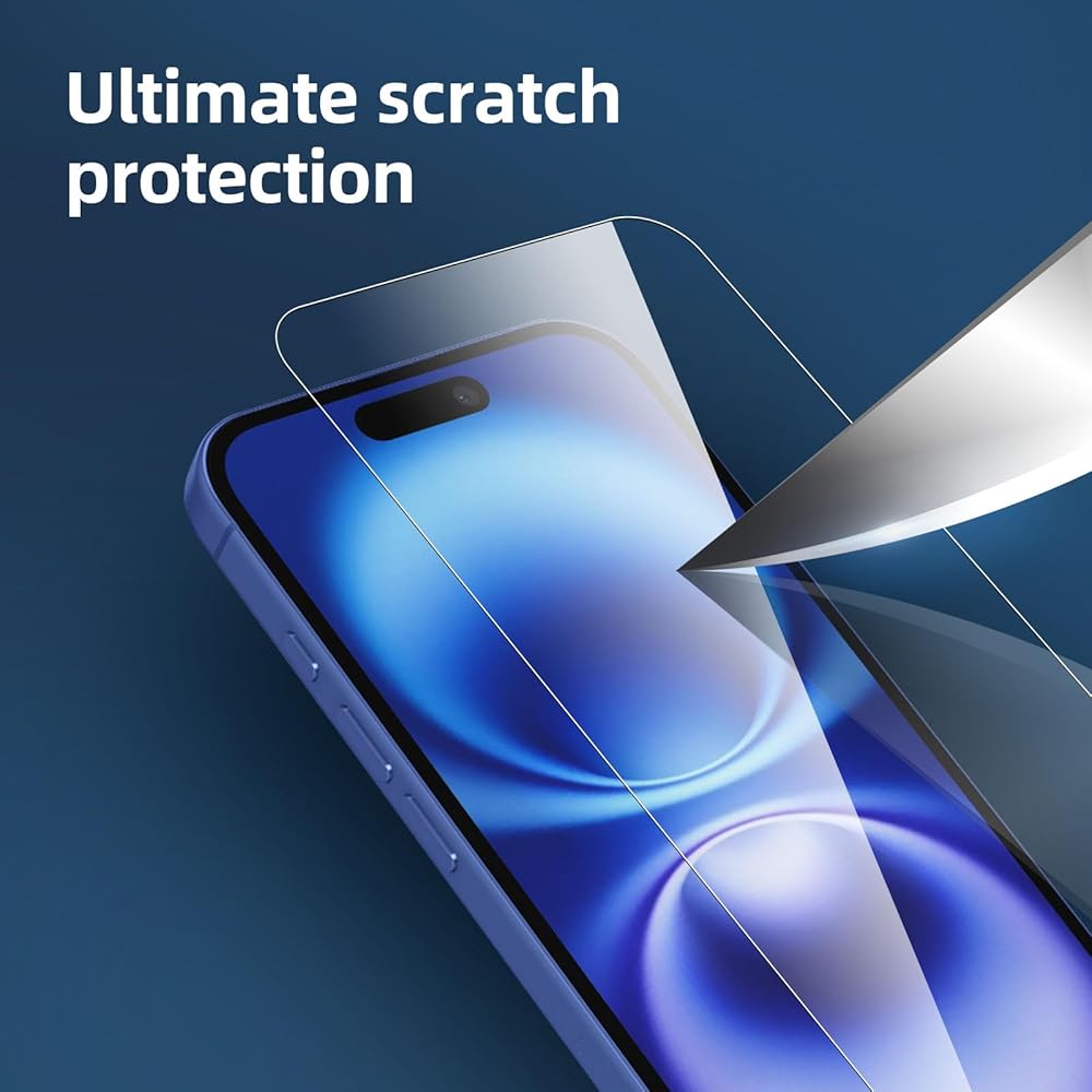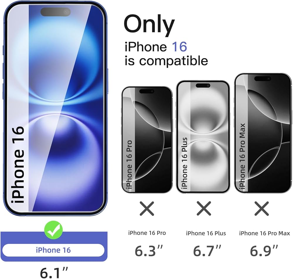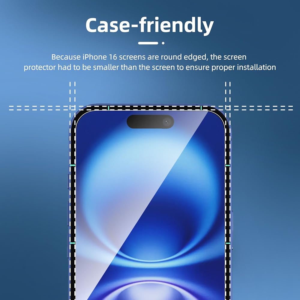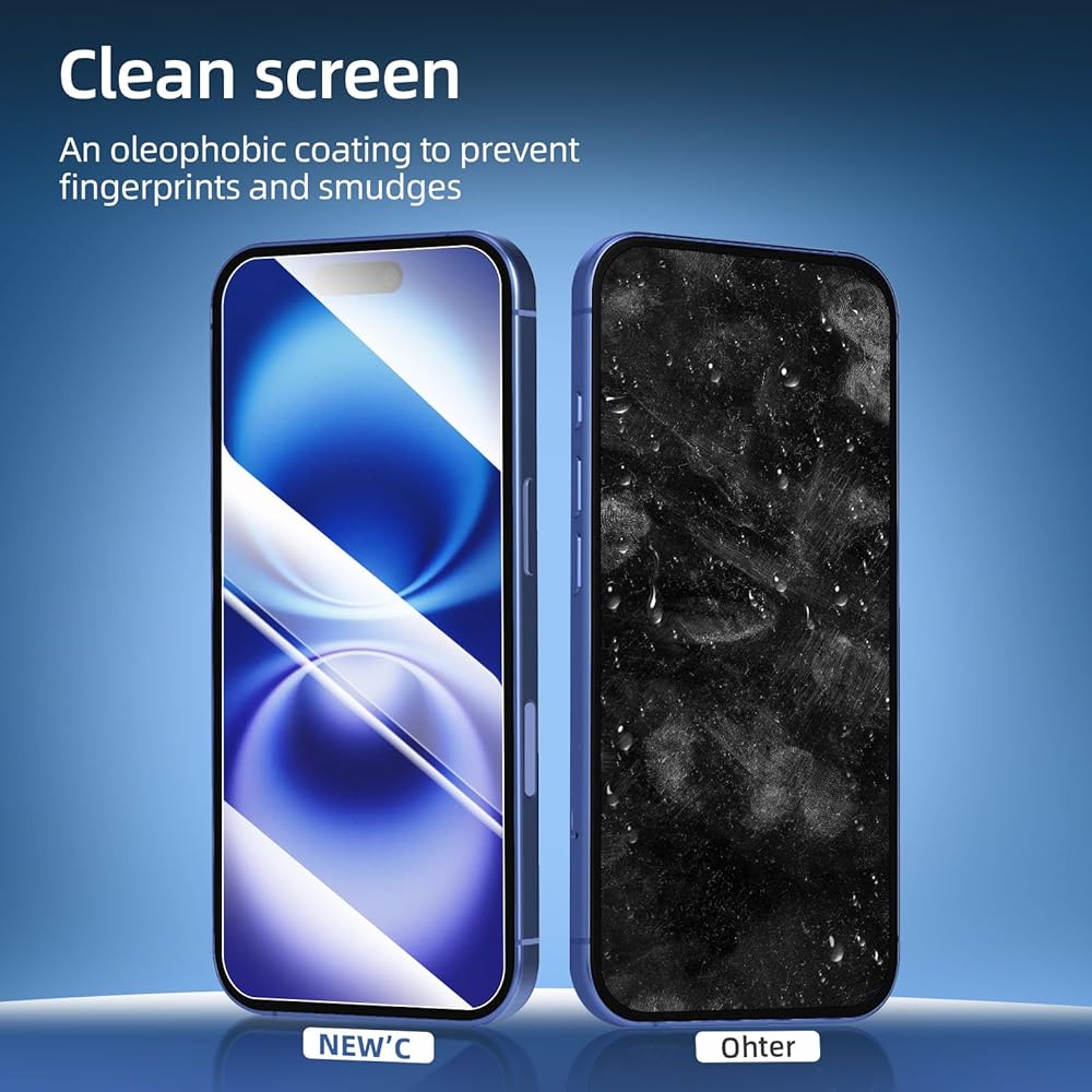 NEW'C iPhone 16 (6.1 بوصة) واقي شاشة من الزجاج المقوى، لمسة رقيقة: مطلي على الظهر بمادة لاصقة من السيليكون الصلب مما يجعل التثبيت سهلاً ويعلق الفيلم بقوة حتى لا يؤثر على حساسية شاشة اللمس