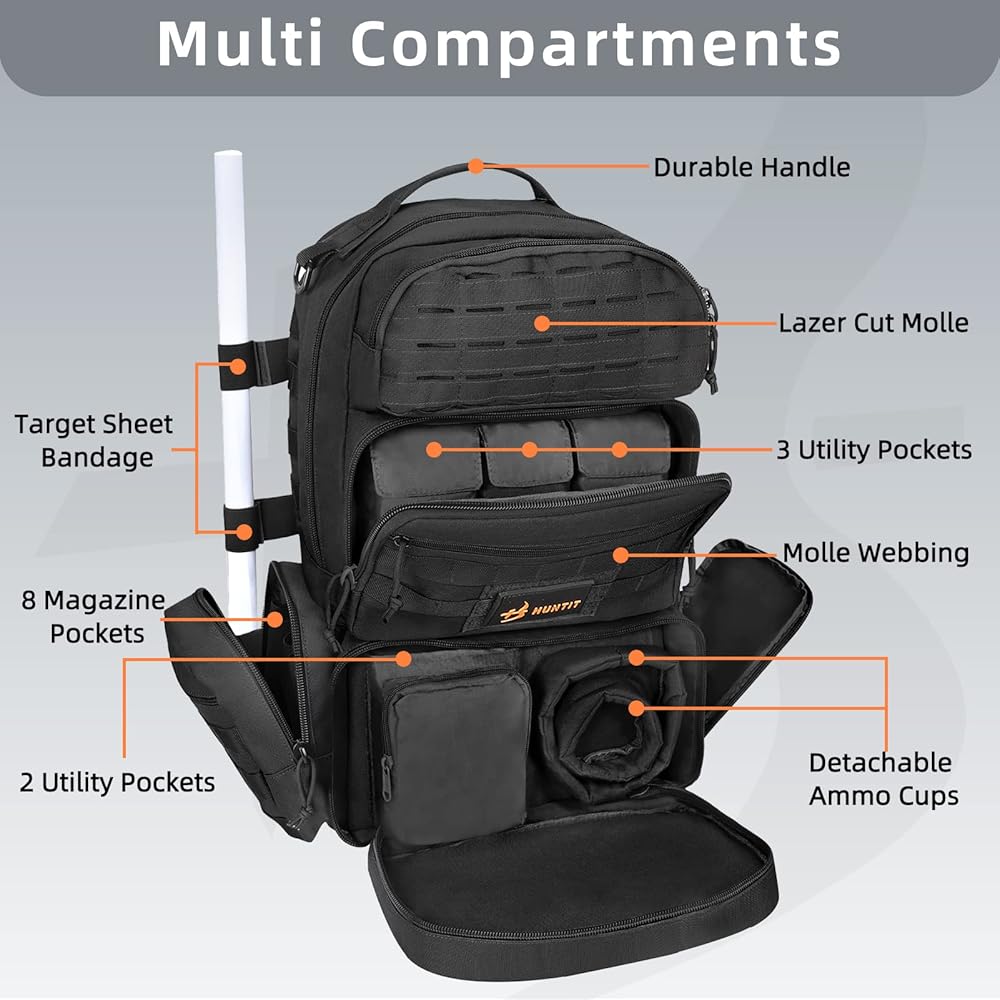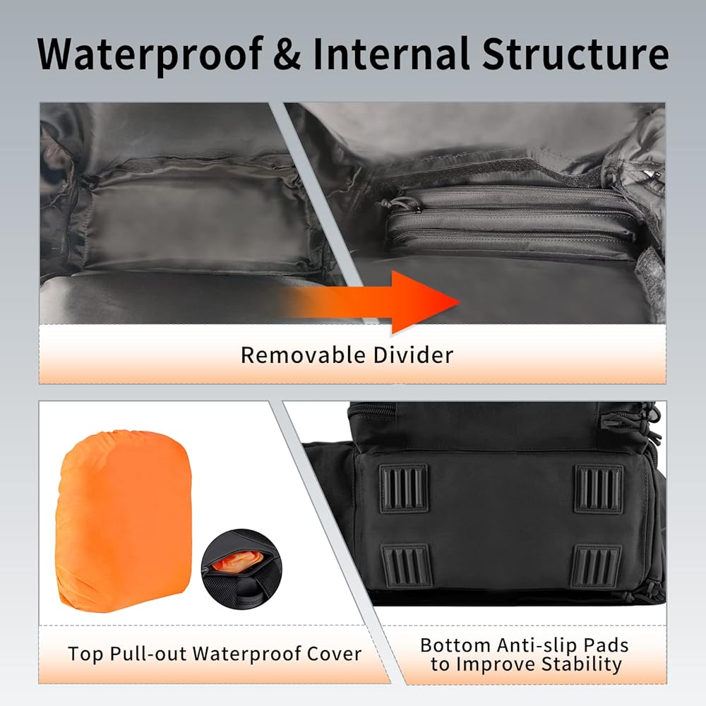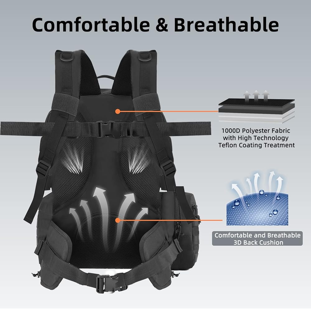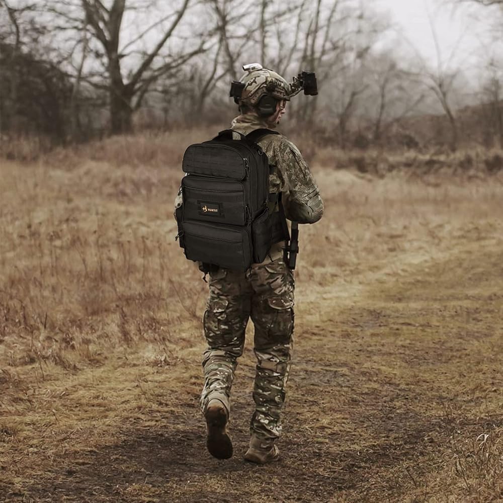 مقاومة للماء وموثوقة: تشتمل حقيبة الظهر التكتيكية هذه على غطاء مطر مقاوم للماء للمساعدة في الحفاظ على محتوياتها جافة أثناء الطقس الممطر. تتميز بإبزيم متين، وخياطة معززة، وسحابات متينة، وسجادات مطاطية سفلية متينة توفر لحقيبة الظهر من مجموعة HUNTIT متانة لا تصدق.