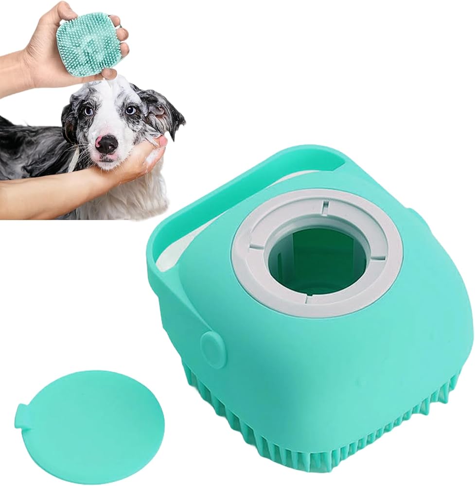فرشاة استحمام للكلاب - فرشاة استحمام للكلاب من السيليكون الناعم مع موزع صابون وشامبو، فرشاة تدليك حمام للعناية بالحيوانات الأليفة للكلاب والقطط ذات الشعر القصير والطويل، باللون الأزرق