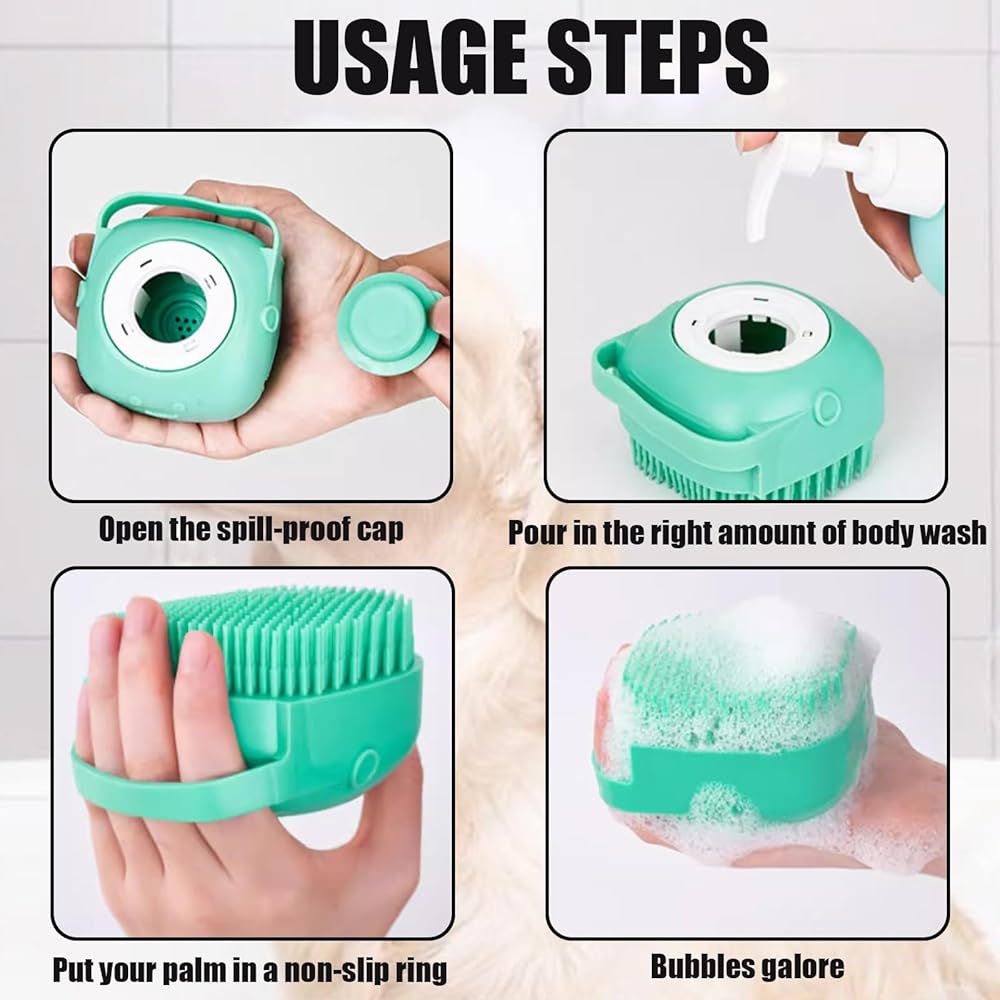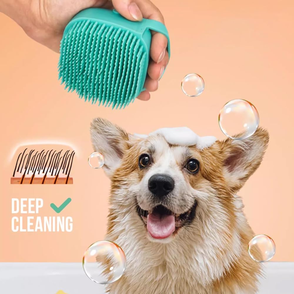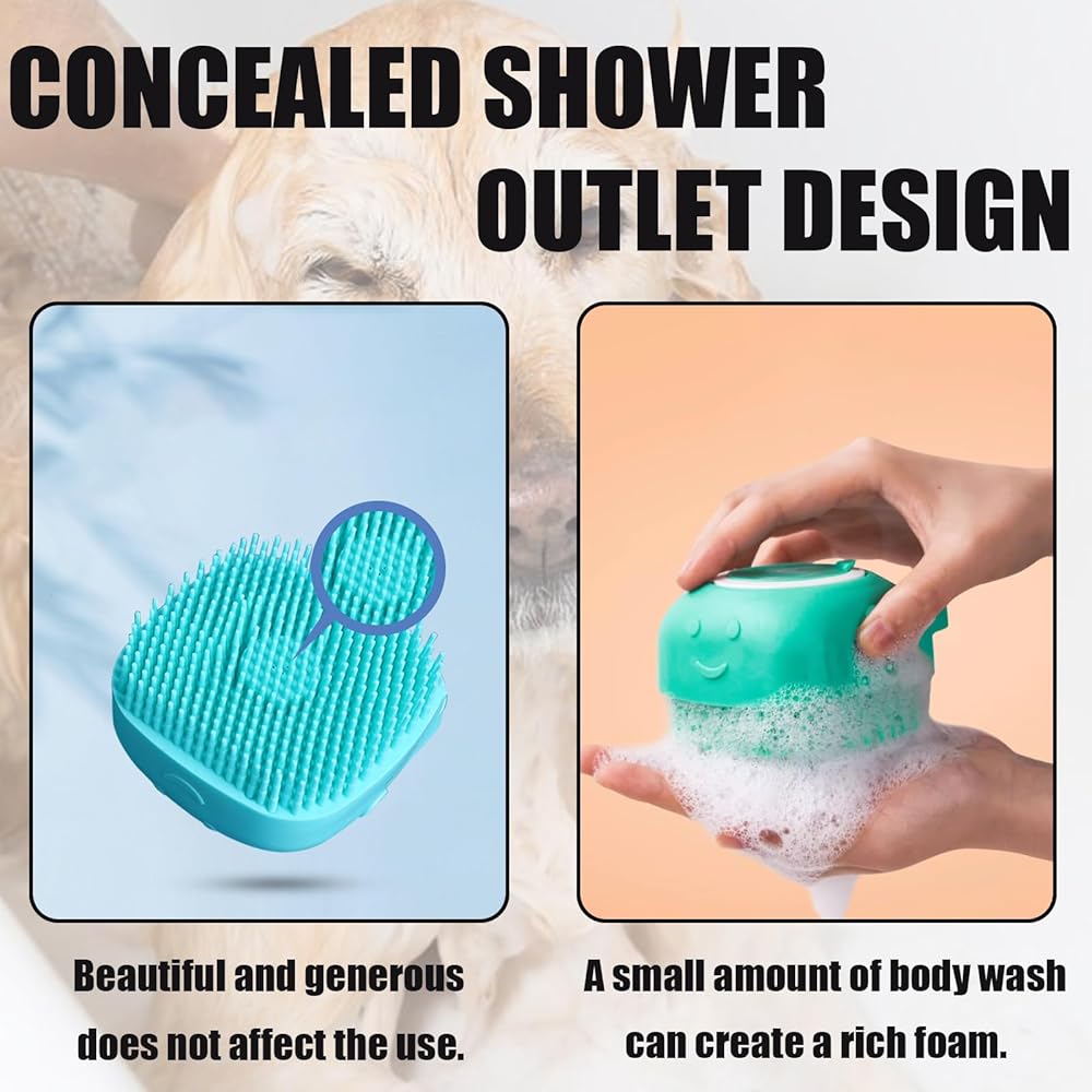 Dog Bath Brush Pet Grooming - Soft Silicone Dog Shower Brush with Soap and Shampoo Dispenser, Pet Grooming Bath Massage Brush for Short Long Haired Dogs and Cats Washing