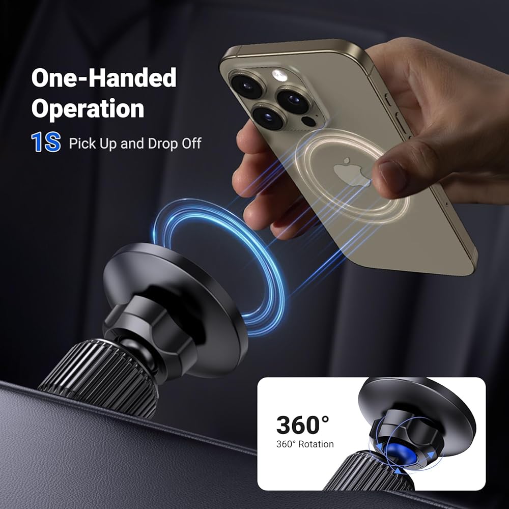 سهل التركيب والضبط: حامل السيارة Magsafe ببساطة عن طريق تدوير المقبض الموجود على حامل الهاتف المحمول، يمكنك بسهولة ضبط طول الخطاف وقفله بأمان في فتحة التهوية. تم تجهيز حامل الهاتف المحمول بالسيارة أيضًا برأس كروي دوار مرن يسمح بدوران 360 درجة، مما يتيح لك ضبط زاوية المشاهدة للحصول على تجربة مثالية. يمكنك بسهولة توصيل هاتفك وفصله بيد واحدة، مما يجعله سهل الاستخدام بشكل لا يصدق.