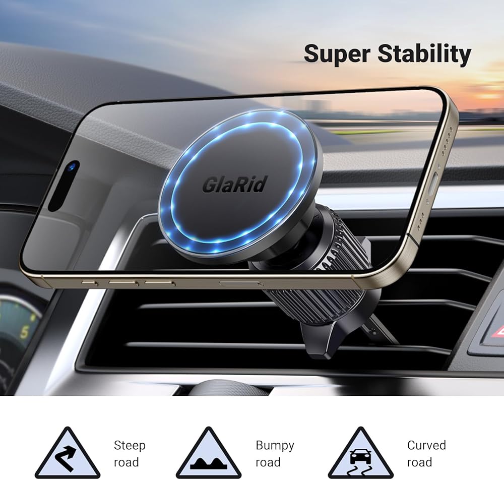 حامل هاتف لفتحة السيارة: حامل الهاتف المغناطيسي هذا يعزز السلامة والراحة أثناء القيادة، مصمم بدقة، ولا يتداخل مع خط رؤيتك، مما يسمح لك بالبقاء مركزًا على الطريق أثناء استخدام هاتفك دون عناء للملاحة واليدين -مكالمات مجانية، أو تشغيل الموسيقى.