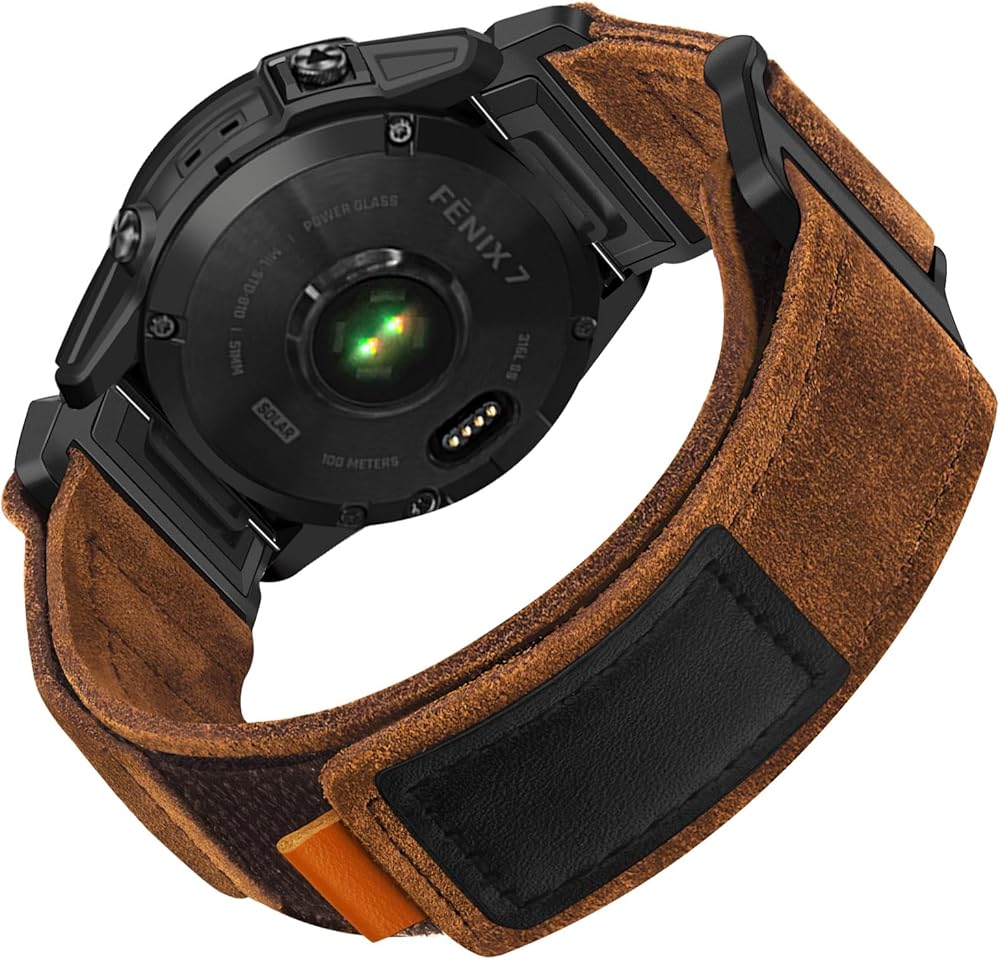 سوار TRUMiRR لـ Fenix 7/6 Pro / 5 Plus للرجال، حزام ساعة سريع التركيب 22 مم من الجلد السويدي لـ Garmin Forerunner 965 / Epix Gen 2 47 مم / Instinct 2...