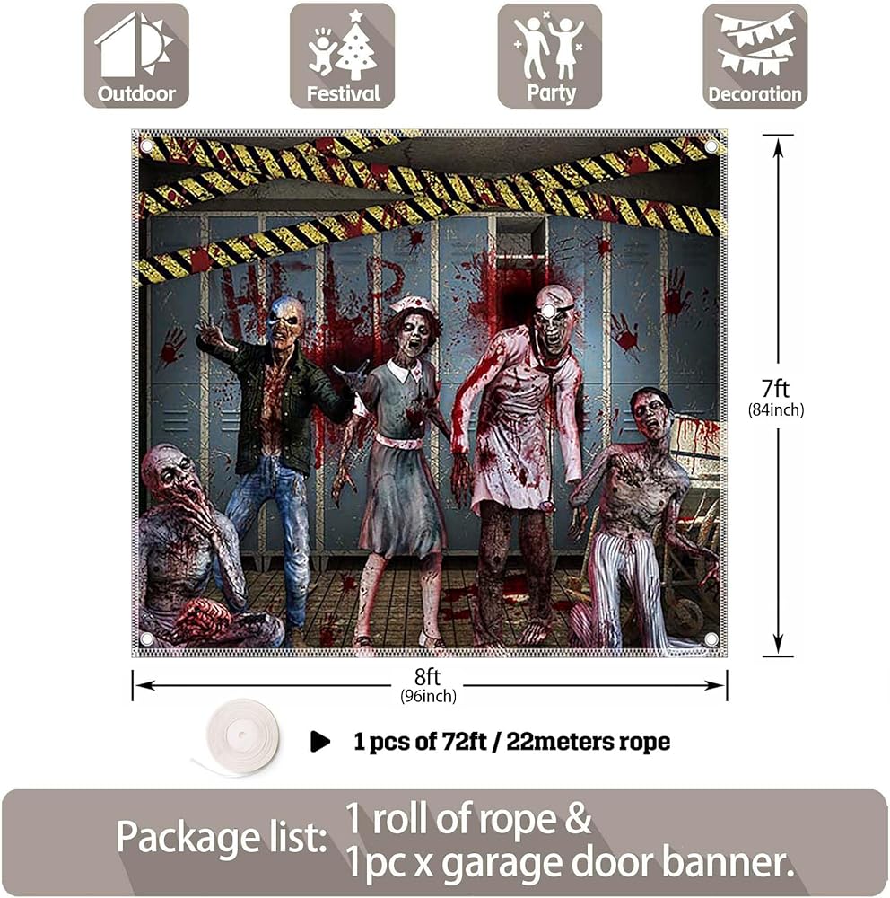 1 piece of 16 x 7ft large garage door decoration and 1 roll of 72ft rope.