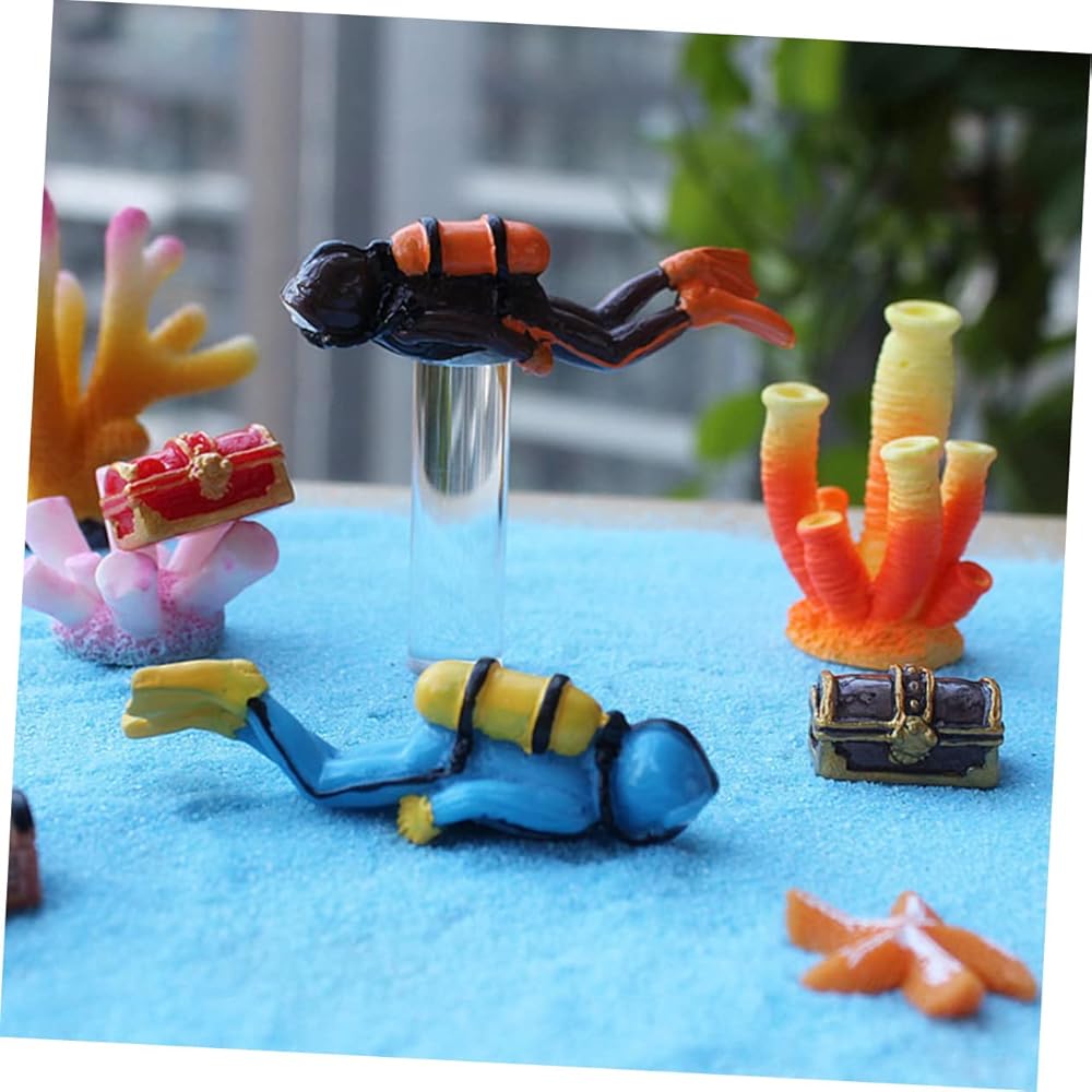 اللعبة: :ديكور غواص حوض السمك متين للغاية، ملون يدويًا، لا يبهت، لا يتغير شكله، مناسب للتجميل والديكور في عالم تحت الماء
