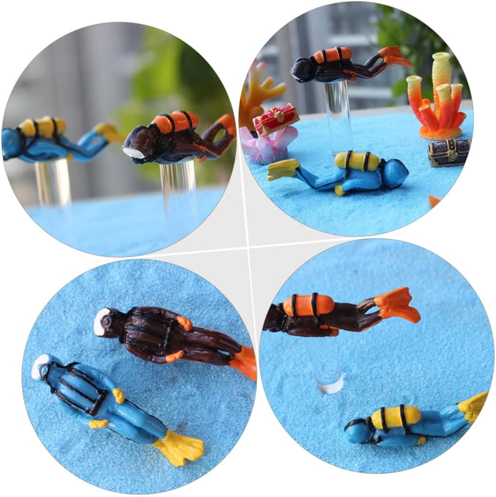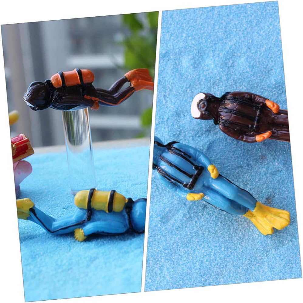 4 قطعة من خزان الأسماك المناظر الطبيعية Frogman المنمنمات زخرفة خزان الأسماك بيتا خزان الأسماك ألعاب صغيرة مصغرة غواص الشكل غواص الشكل لعبة غواص كعكة توبر الراتنج المحيط خزان السلاحف